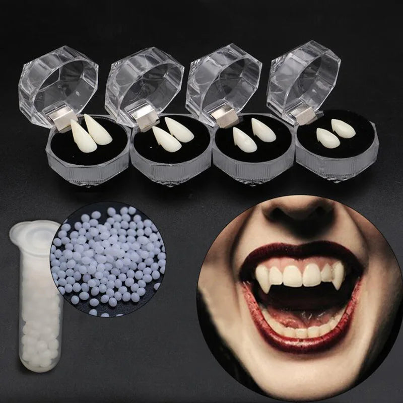 1 Pairs Vampire Teeth Fangs Dentures Props Halloween Costume Props False Teeth Solid Glue Denture Adhesive Halloween Party Decor
