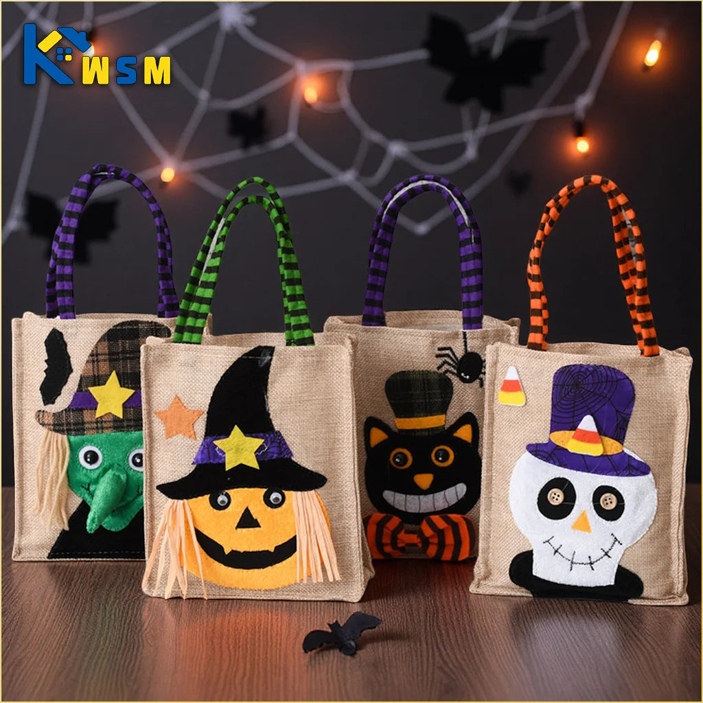 1-10PCS Halloween Treat Bags with Handles for Kids Candy Gift Supplies Party Favor Packaging Bag for Trick or Treat Decoration