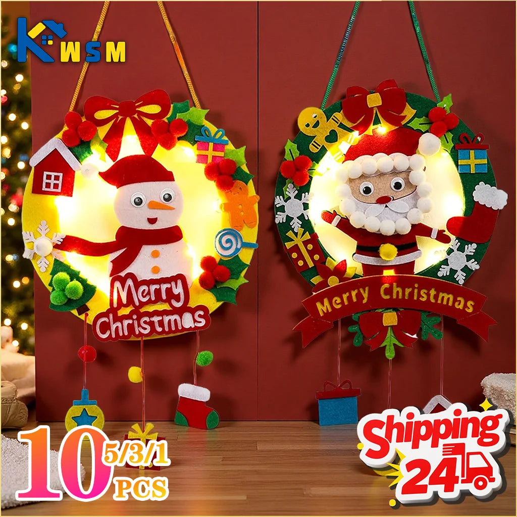 1-10pcs Luminous Christmas Garland Pendant DIY Ornaments Kit for Kids Kindergarten Home Classroom Christmas Party Decoration
