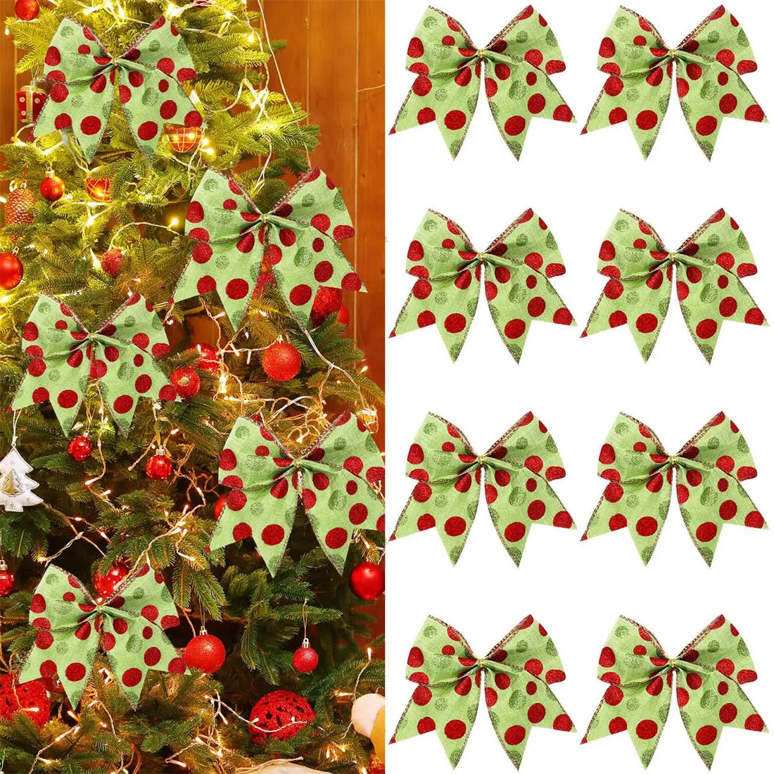 8PCS Red and Green Christmas Polka Dot Bow Decoration Christmas Accessories Gift Box Christmas Elf Tree Garland Decoration