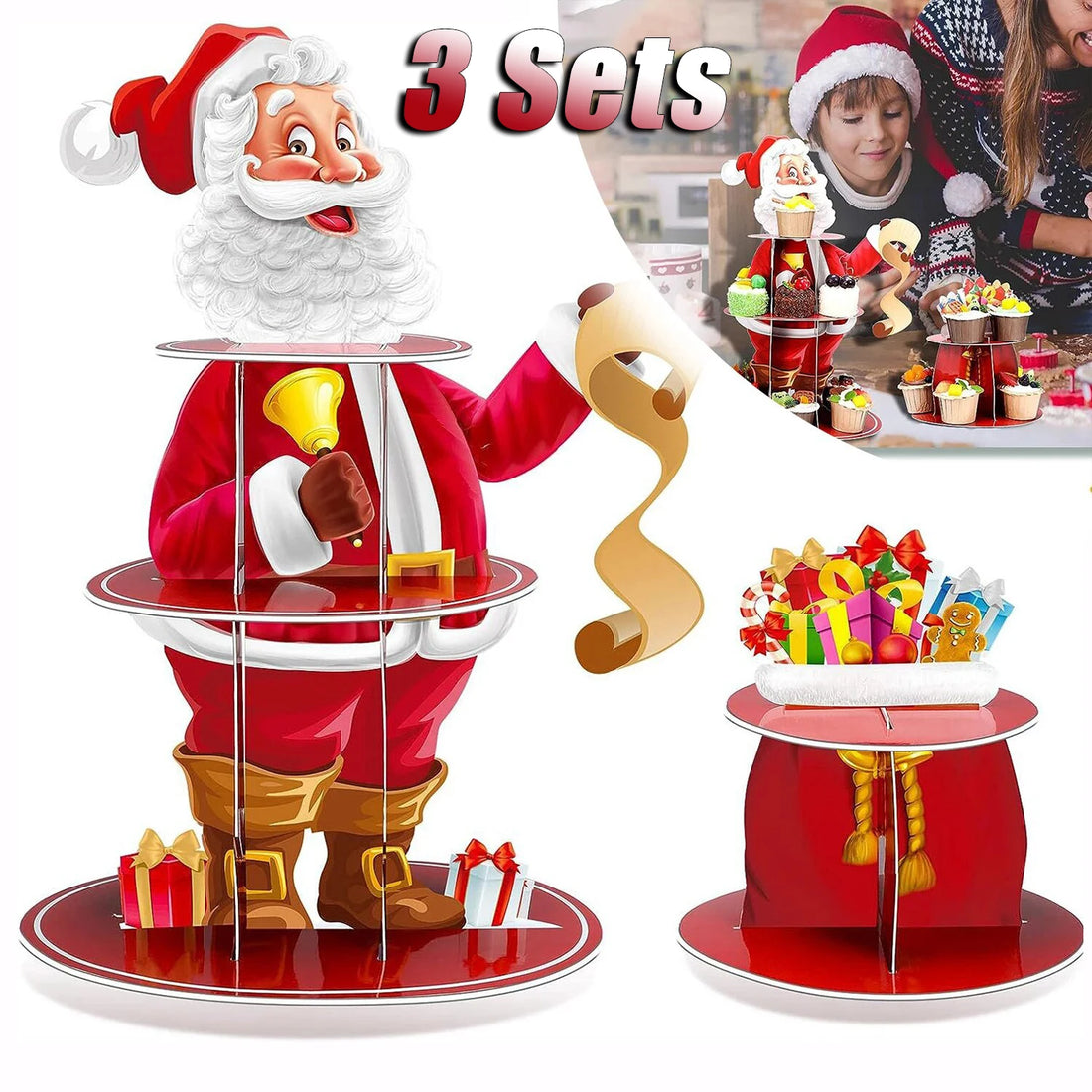 1/2/3 Sets Christmas Cake Stands Paper Dessert Tray Santa Claus Decoration Birthday Party Decoration 3 Tier Round Dessert Trays