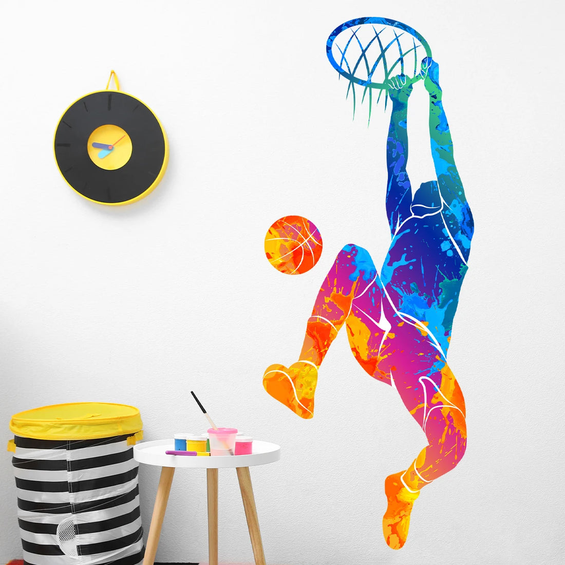 1pcs PVC Self-adhesive Basketball Wall Stickers for Boys Room Home Decor Watercolor Graffiti Slam Dunk Pattern Wall Decals