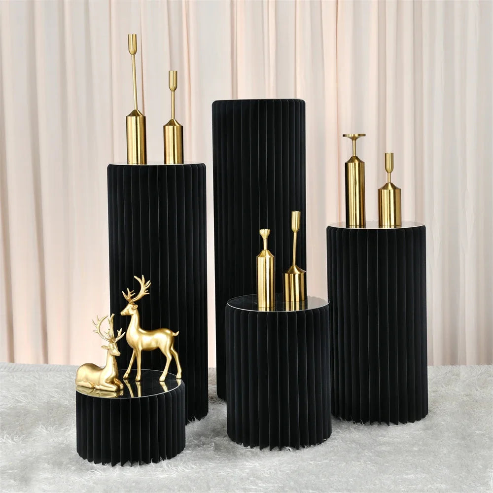 Black Folding Paper Cylindrical Banquet Birthday Party Dessert Table Cake Stand Wedding Prop Baby Shower Ramadan Decoration