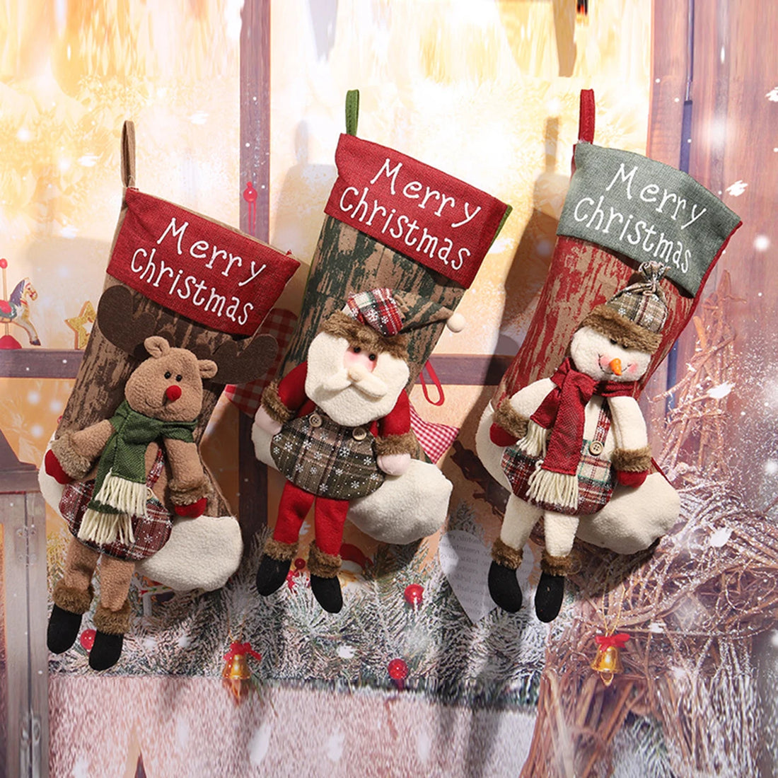 Christmas Stockings Large Santa Snowman Reindeer Set - Festive Hanging Decor, Gift Bags for Candy
