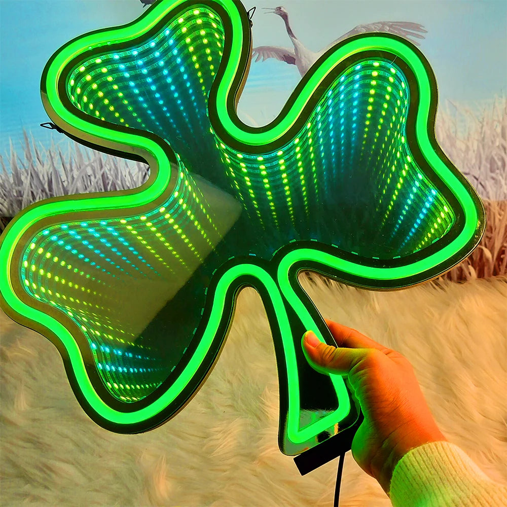 Clover color changing double-sided mirror, hanging and standing art tunnel neon lights, suitable for store and home decoration