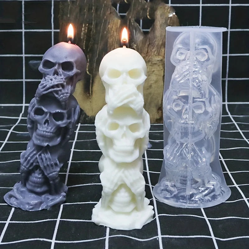 3 Skull Scary Decorations for Candles, Resin Crafts, Halloween and Spooky Room Decorations, Vintage Halloween Decorations