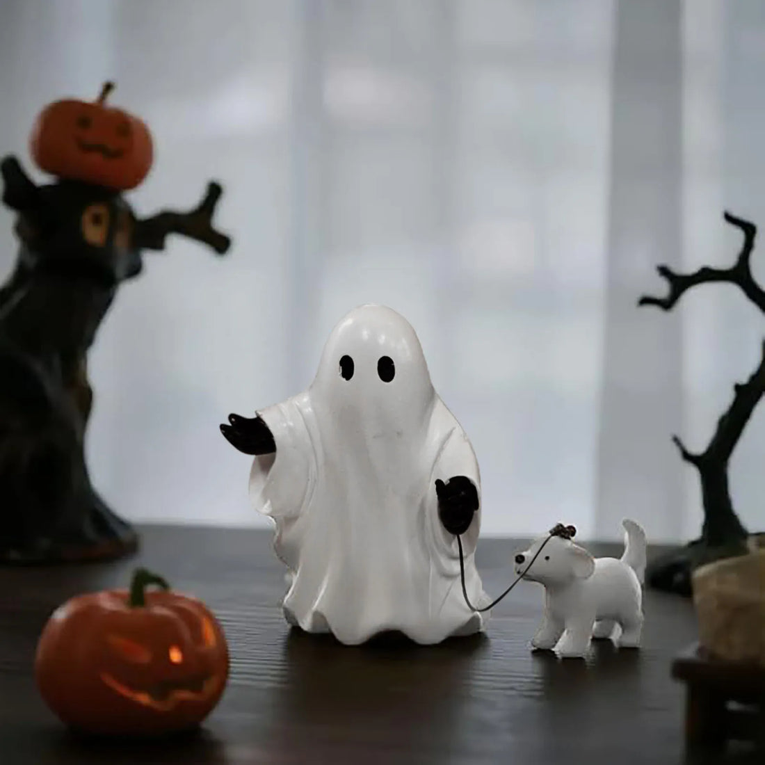 Ghosts And Puppy Candle Holder Halloween Statue Ghosts Walking Dog Statue For Shelf, Table Fun Home Decor