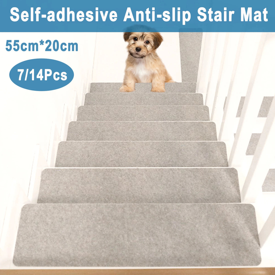 7/14Pcs 45x20cm Stair Mat Anti-slip Staircase Step Floor Self-adhesive Stair Pad Sticky Bottom Rugs Carpet DIY Cutting)