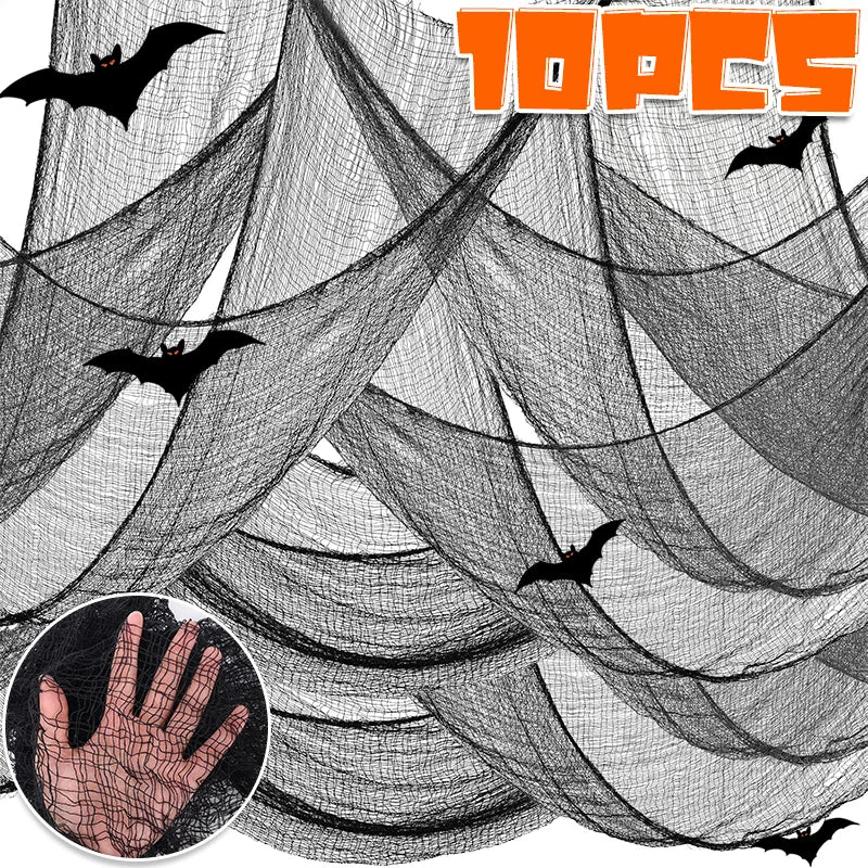 10/1PCS Black Creepy Cloths 76x198cm Mesh Cheesecloths Halloween Party Gauze Netting Spider Web Wall Gauze Terror Scene Props