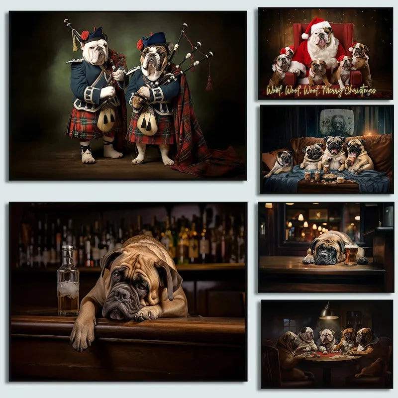 English Bulldogs Poker Poster Canvas Print Wall Art Vintage Whiskey Pub Decor for Man Cave Game Room Bar Home Decor Funny Gift