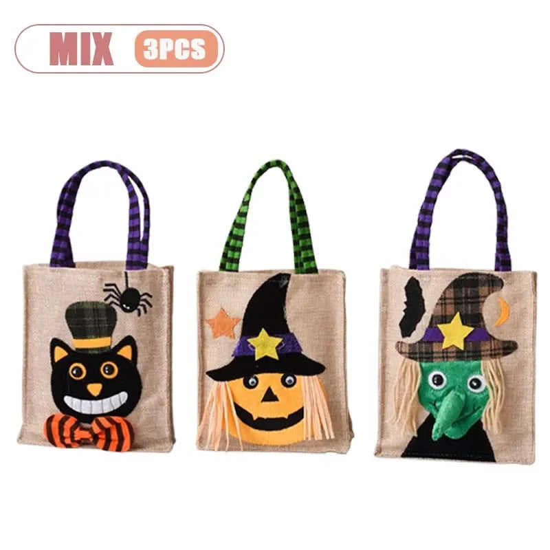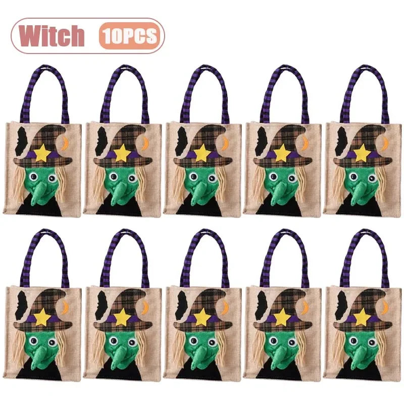 1-10PCS Halloween Treat Bags with Handles for Kids Candy Gift Supplies Party Favor Packaging Bag for Trick or Treat Decoration