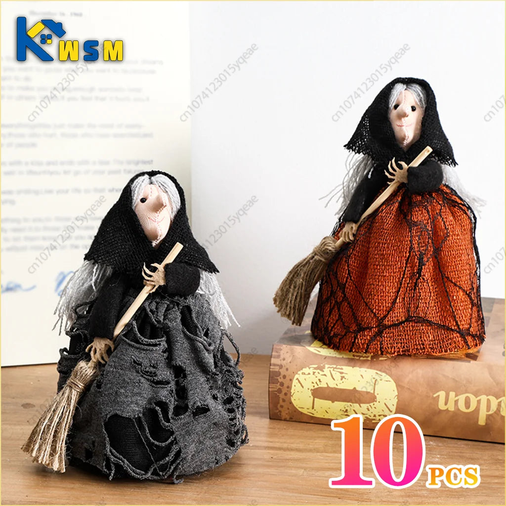 1-10PCS Halloween Witch Decoration Cute Witch Decoration Hand Held Broom Home Garden Indoor Ornament Halloween Party Decoration