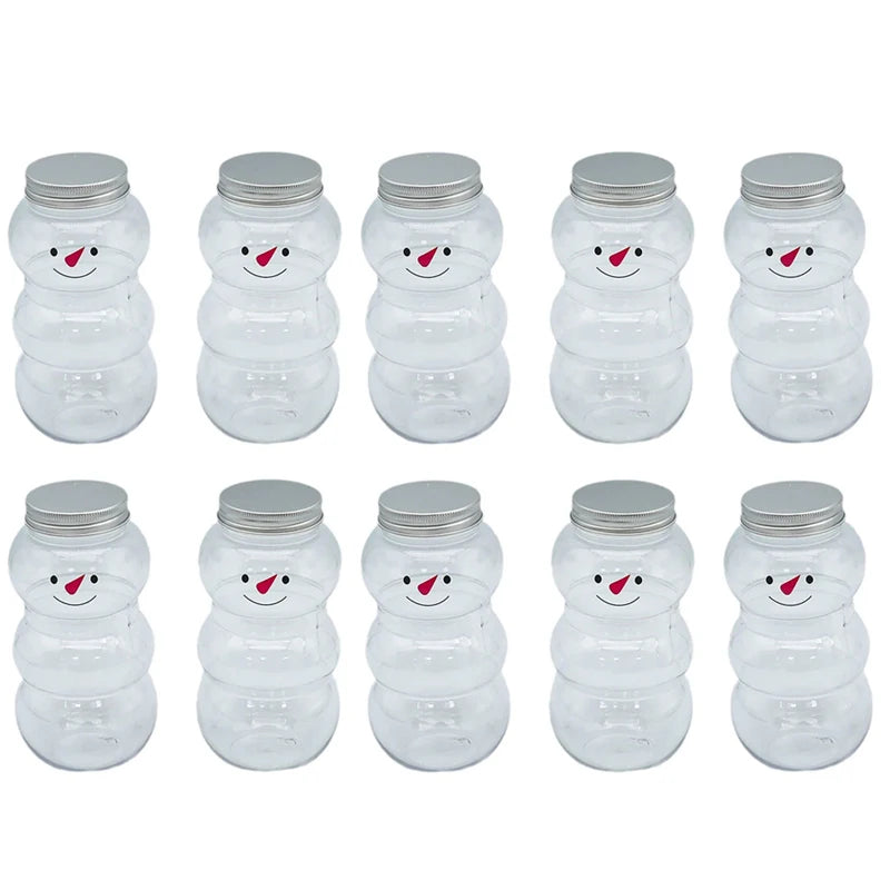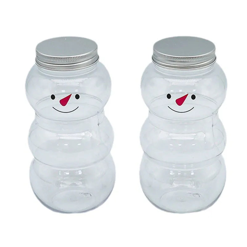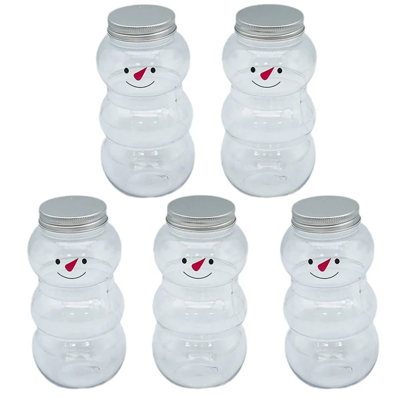 1/2/5/10PCS 500ML Christmas Snowman Milk Juice Tea Bottles Xmas Drink Bottle Plastic Transparent Cup Candy Biscuits Sealed Jar