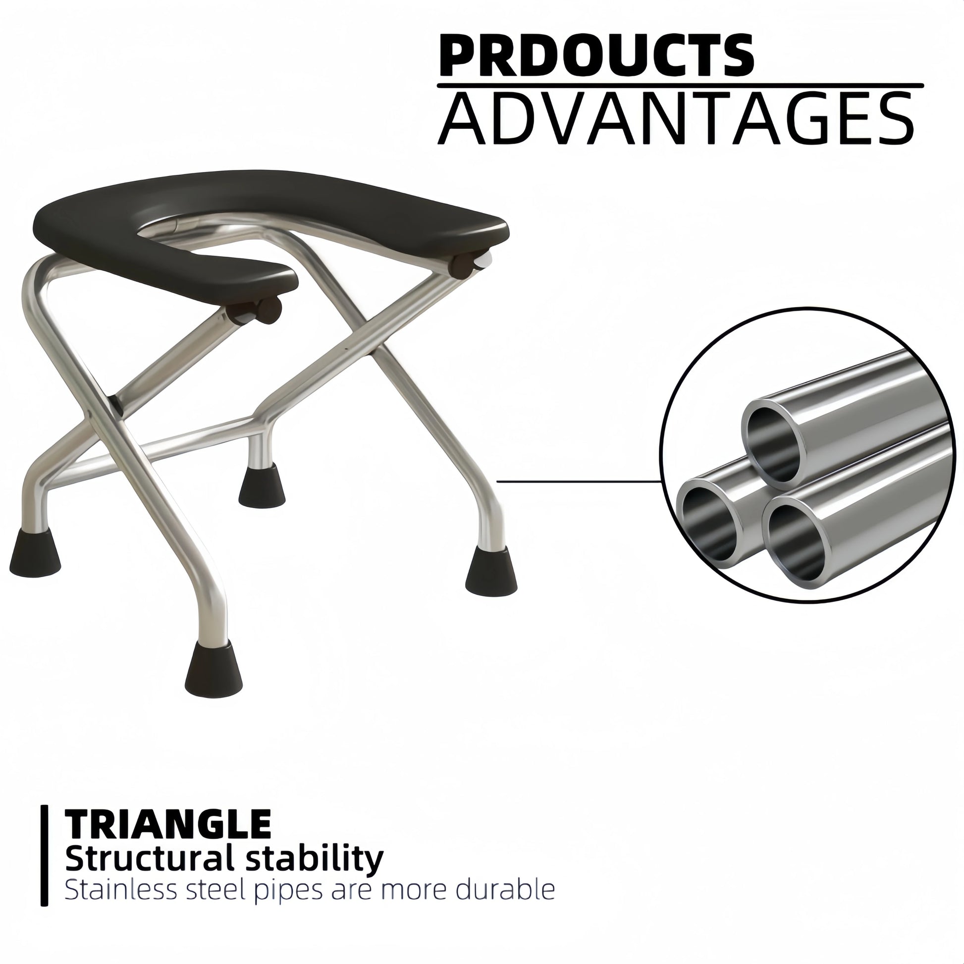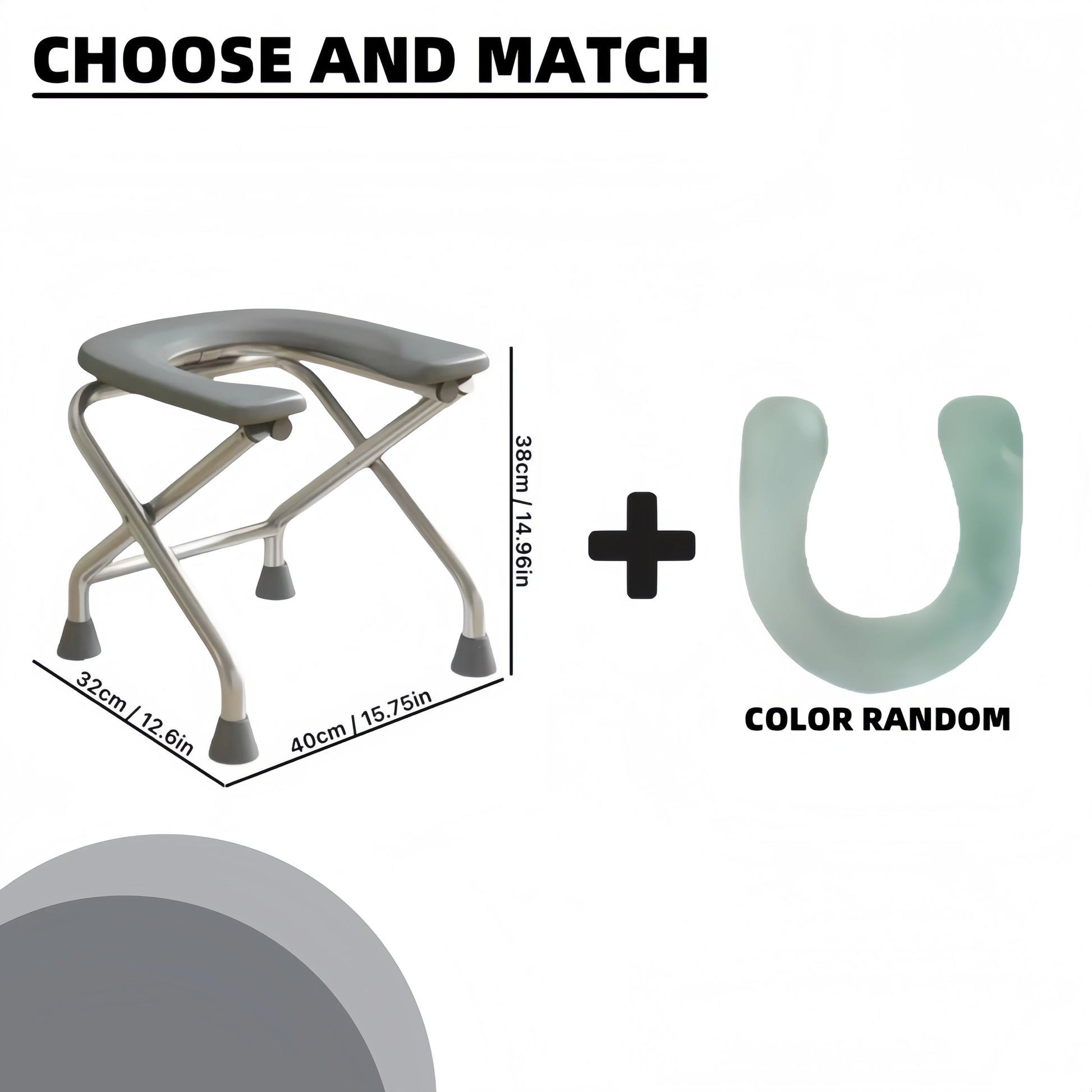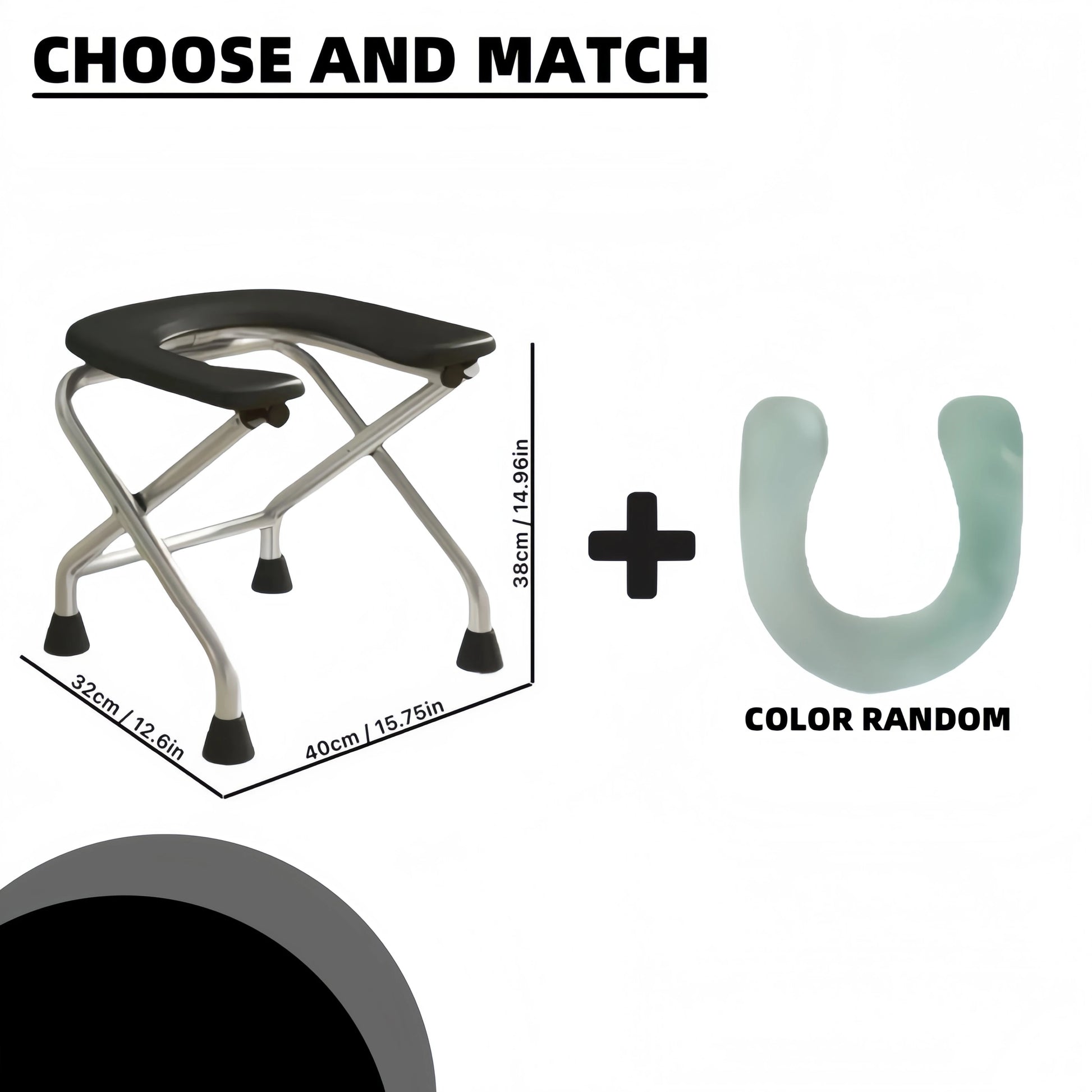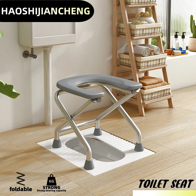 1 foldable U-shaped stainless steel toilet chair, which can bear 300 pounds, is easy to store and clean, suitable for the elderly and pregnant women, and can be used as a bath stool