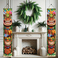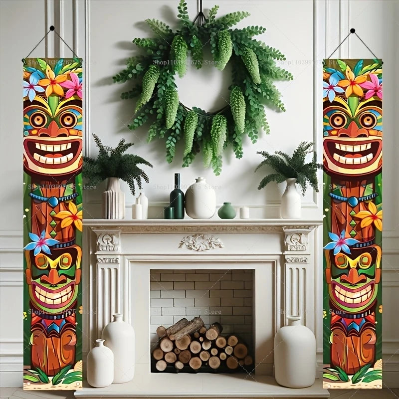 1 Pair Tiki Totem Welcome Porch Banner Hawaiian Luau Party Decoration Supplies Indoor Outdoor Wall Hanging Decor Banner Sign