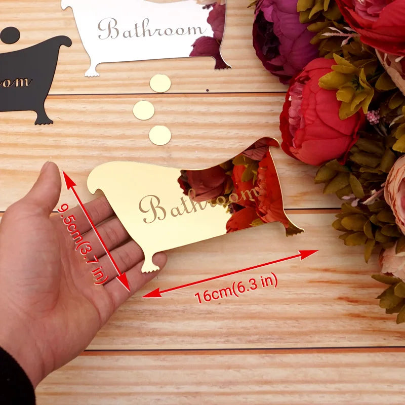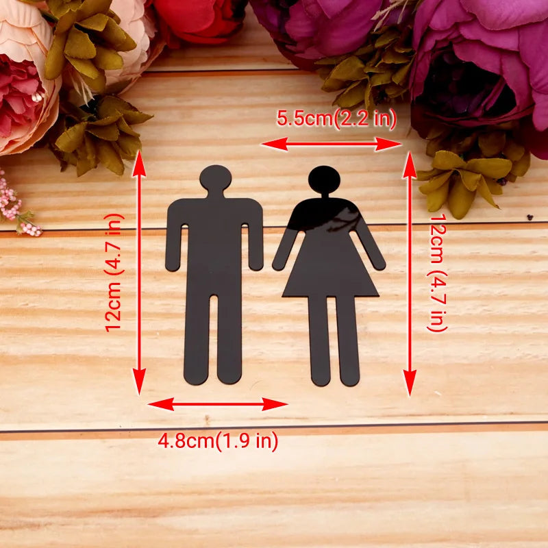 1 Set Bathroom, Men, Women Entrance Sign Acrylic Mirror Surface Door 3d Mirror Surface Wall Sticker Home Decoration