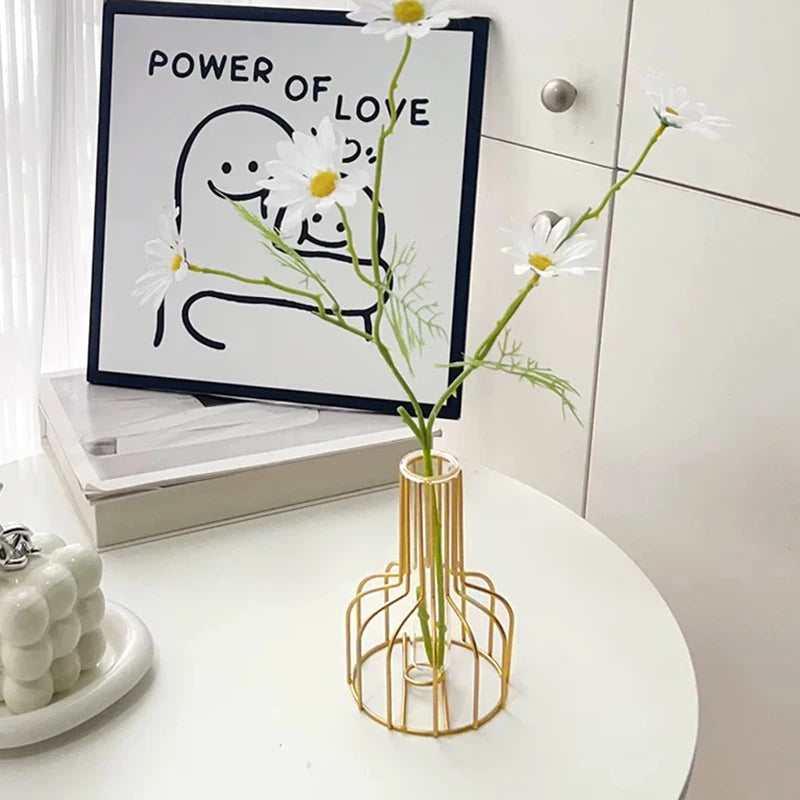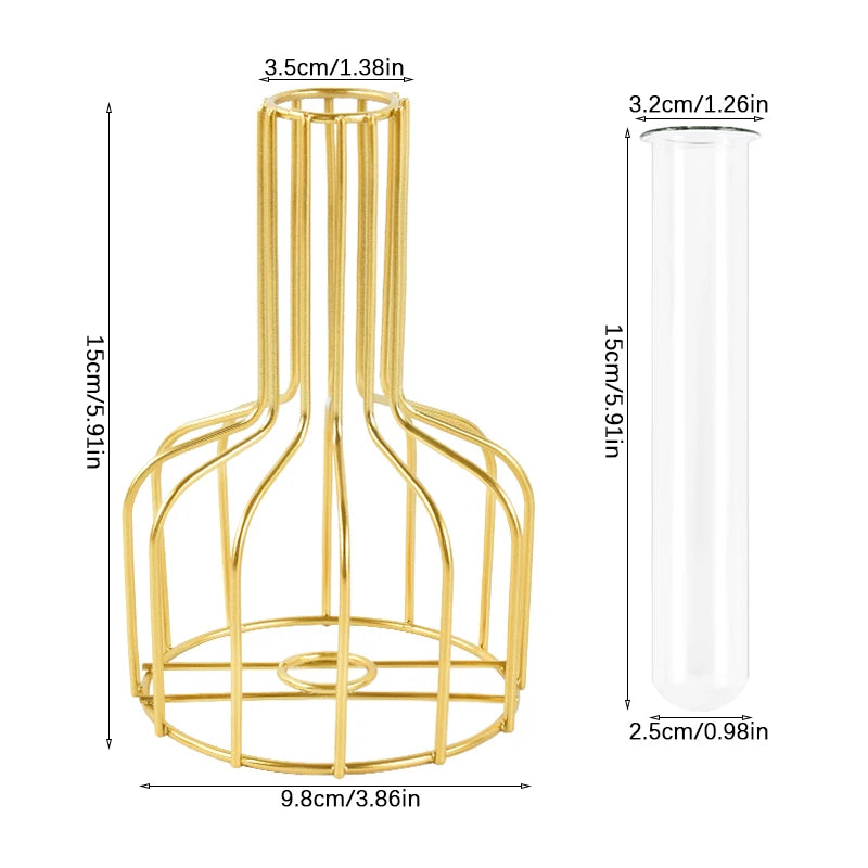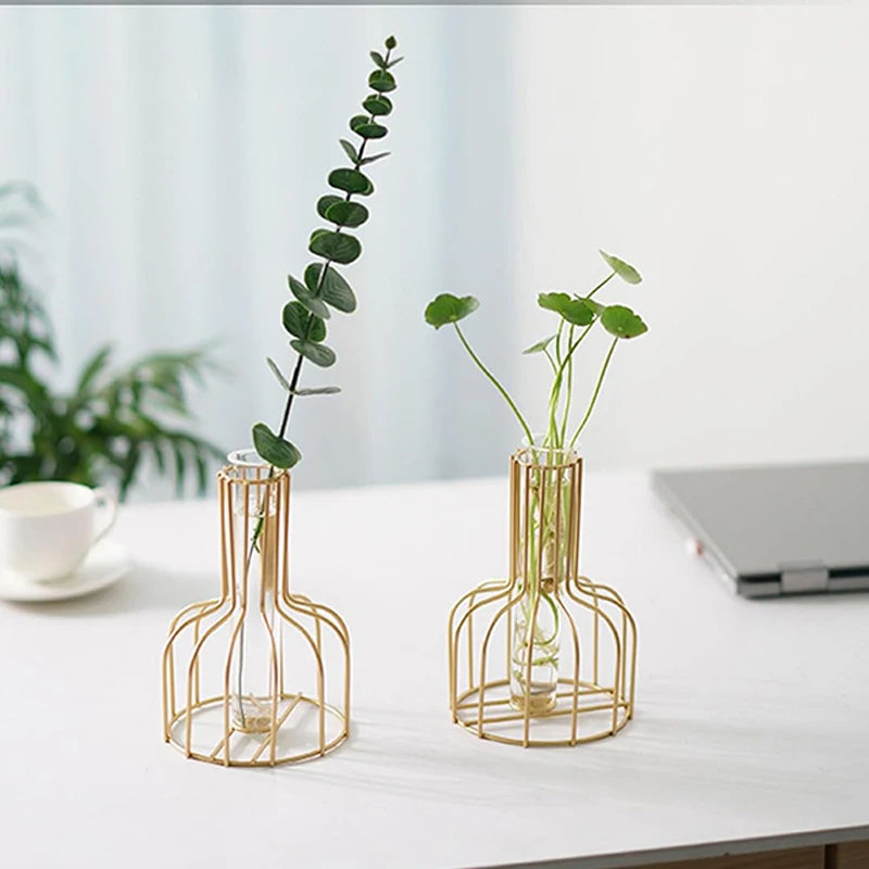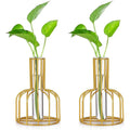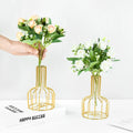 1 Set Golden Vase Metal Flowers Pot Hydroponic Container Test Tube Vase Modern Luxurious Home Desk Decoration Alloy Glass Vases