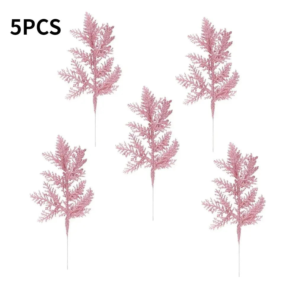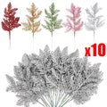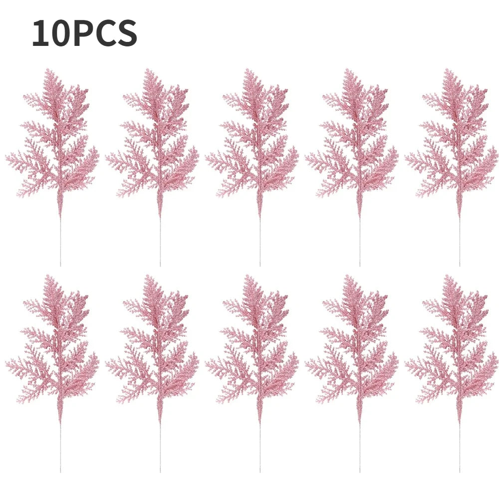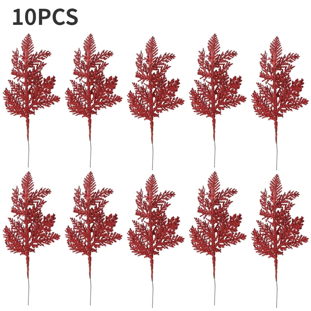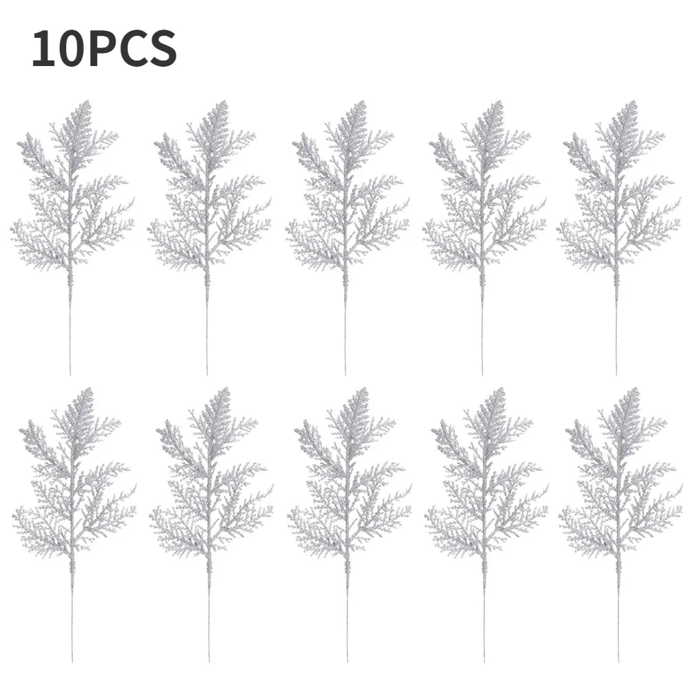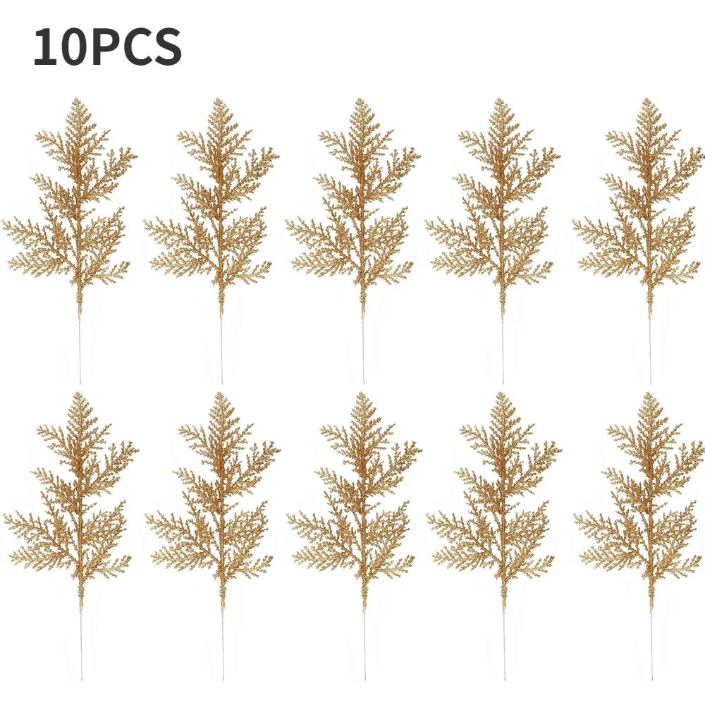 10/5Pcs Artificial Plants Pine Branches Christmas Glitter Gold Leaves Xmas Tree Decoration Pendant Christmas Home Decoration