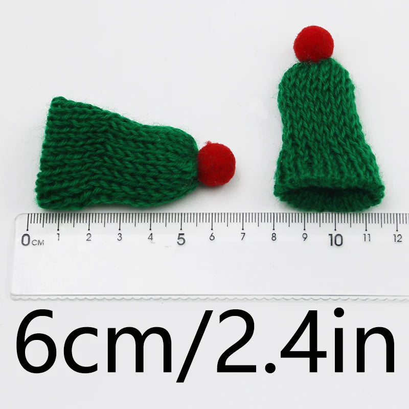 (10 Pieces/pack) 4x6cm Mini Christmas Knitted Hat Plush Yarn Finger Hat Christmas Decoration Holiday Handmade DIY Pendant