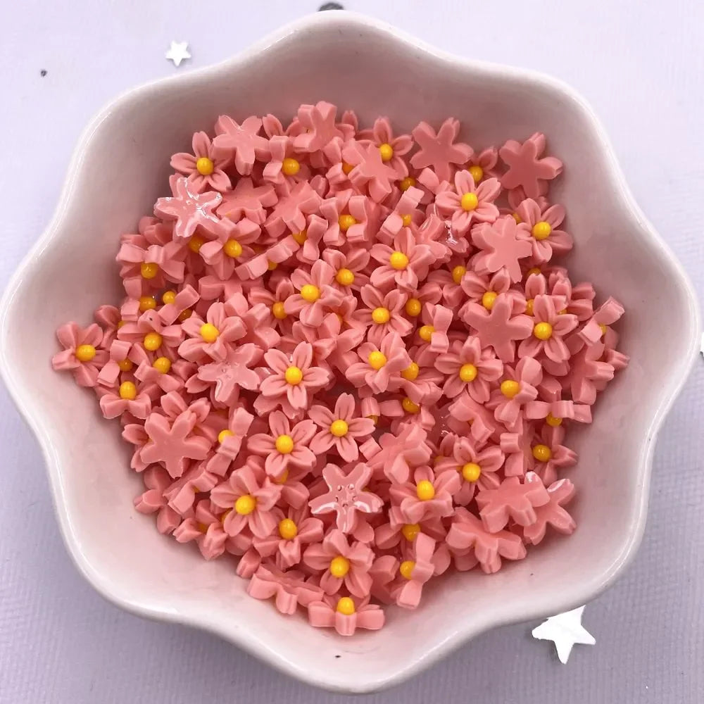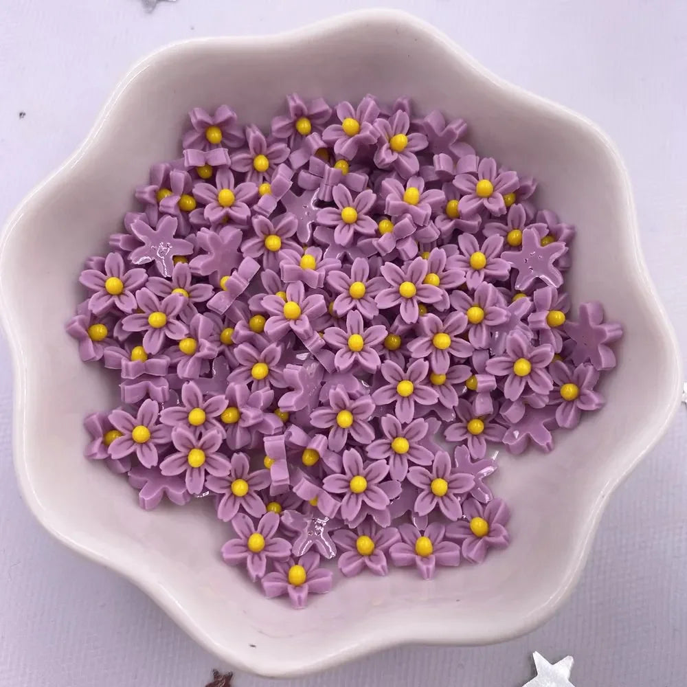 100Pcs 8mm Resin 3D Colorful Mini Flower Gems Flatback Figurines Scrapbook Wedding Applique Nail Art Decor Crafts OL560