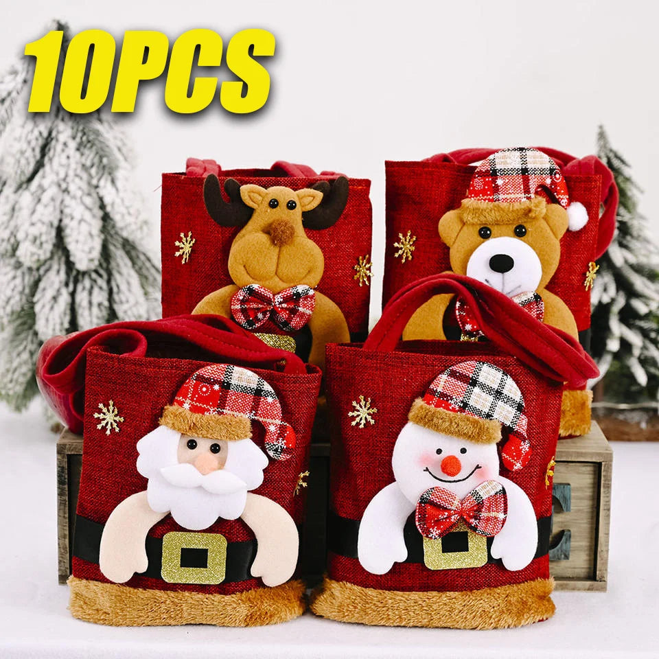 10PCS Christmas Tote Bag Snowman Fawn Father Christmas Gift Bags Children Candy Bags Storage Bags Christmas Decoration