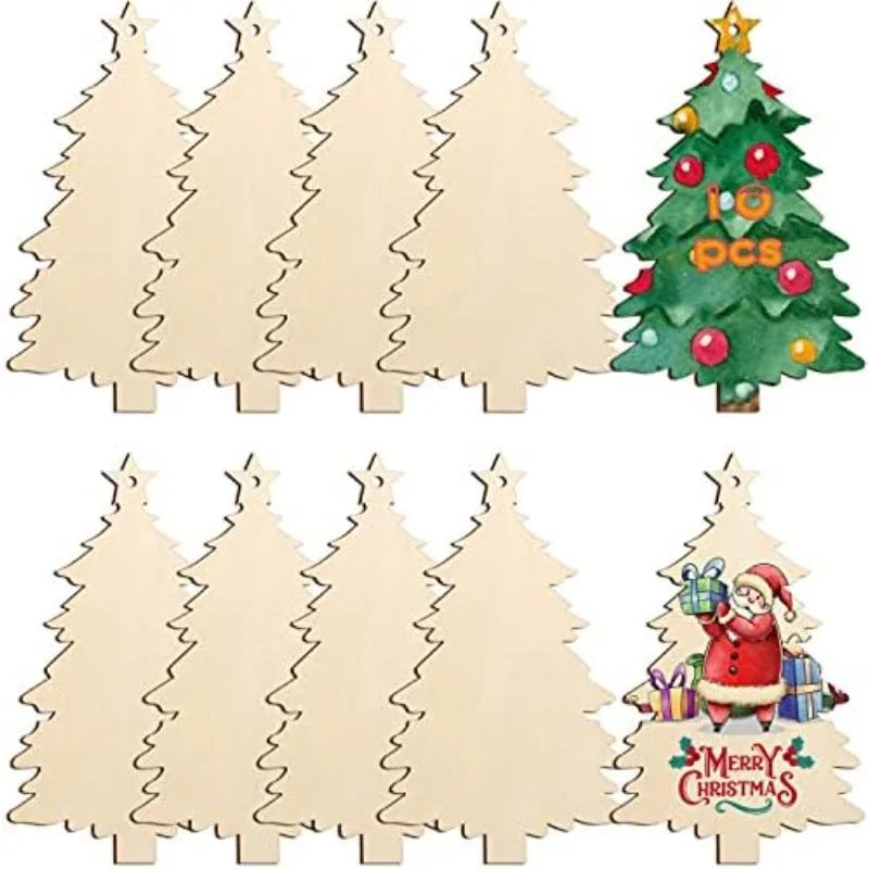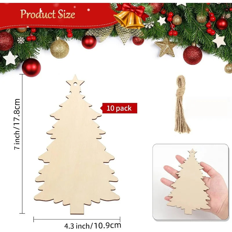 10pcs Wooden Christmas Ornaments DIY Blank Unfinished Wood Ornament for Crafts Hanging Decorations (Beige Christmas Tree)