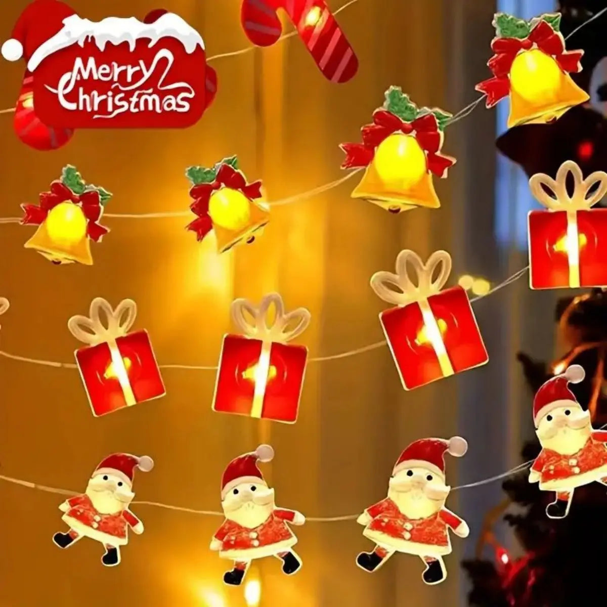 1PC20LED Copper wire light string snowman Christmas tree Santa Claus crutch snowflake bell shaped Christmas decoration lights