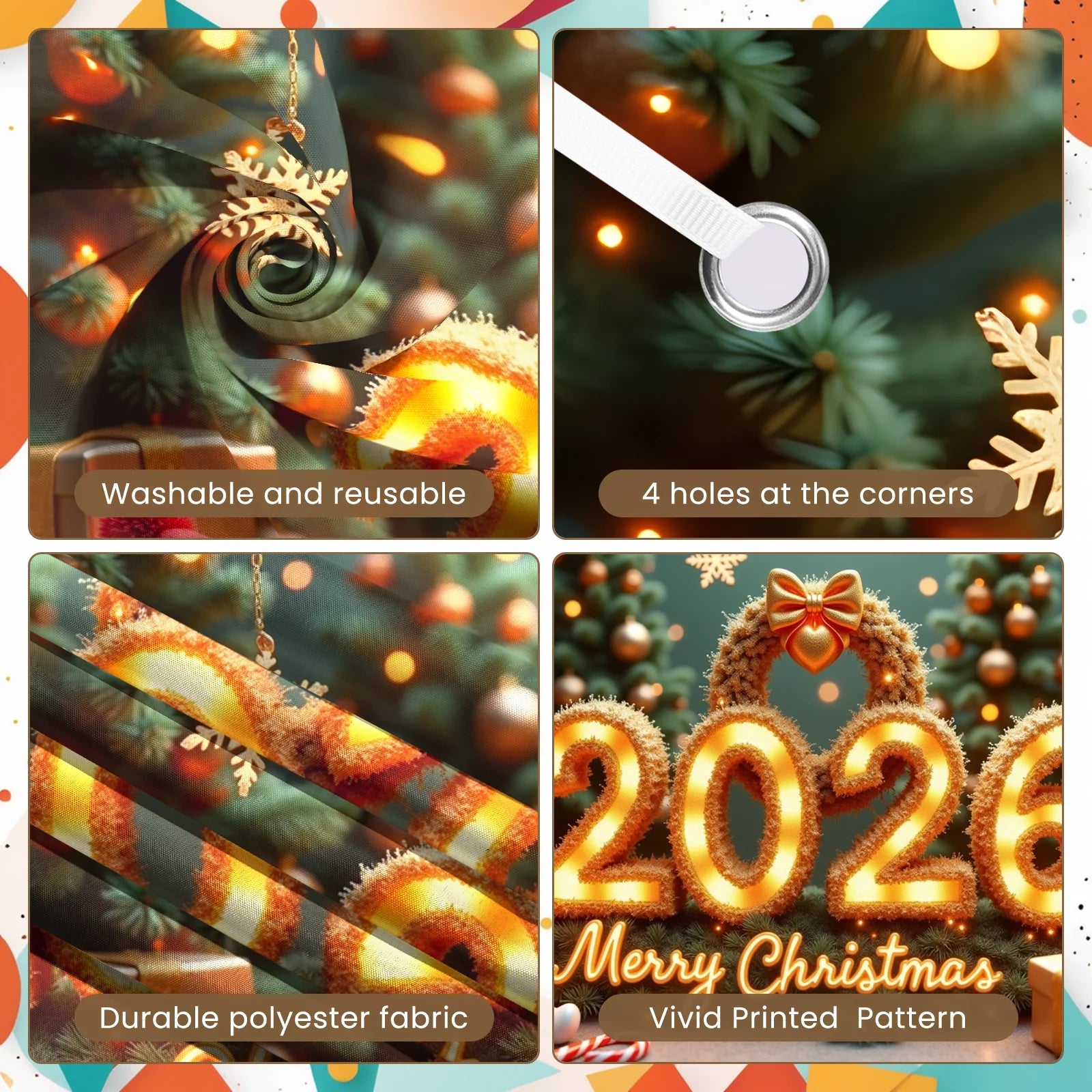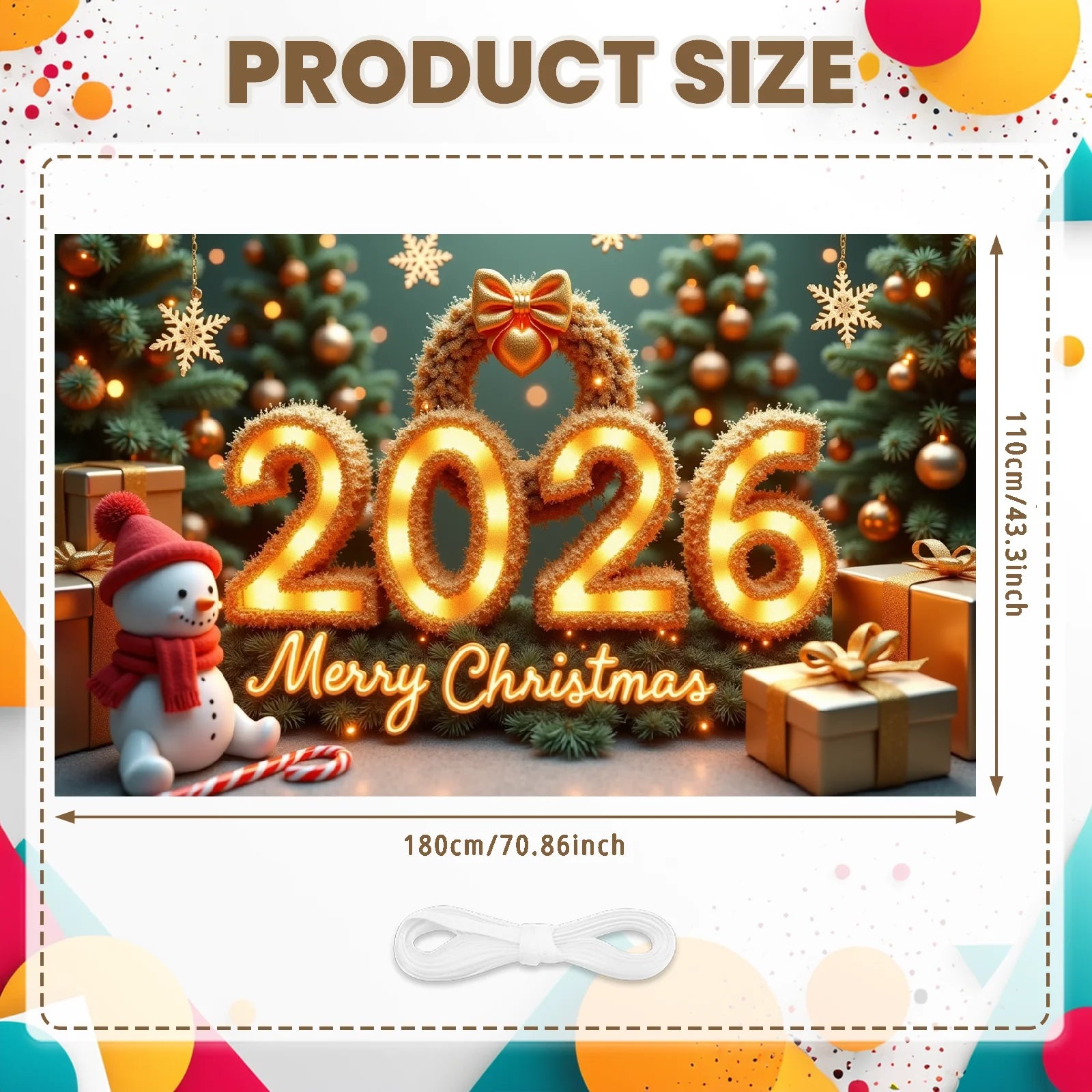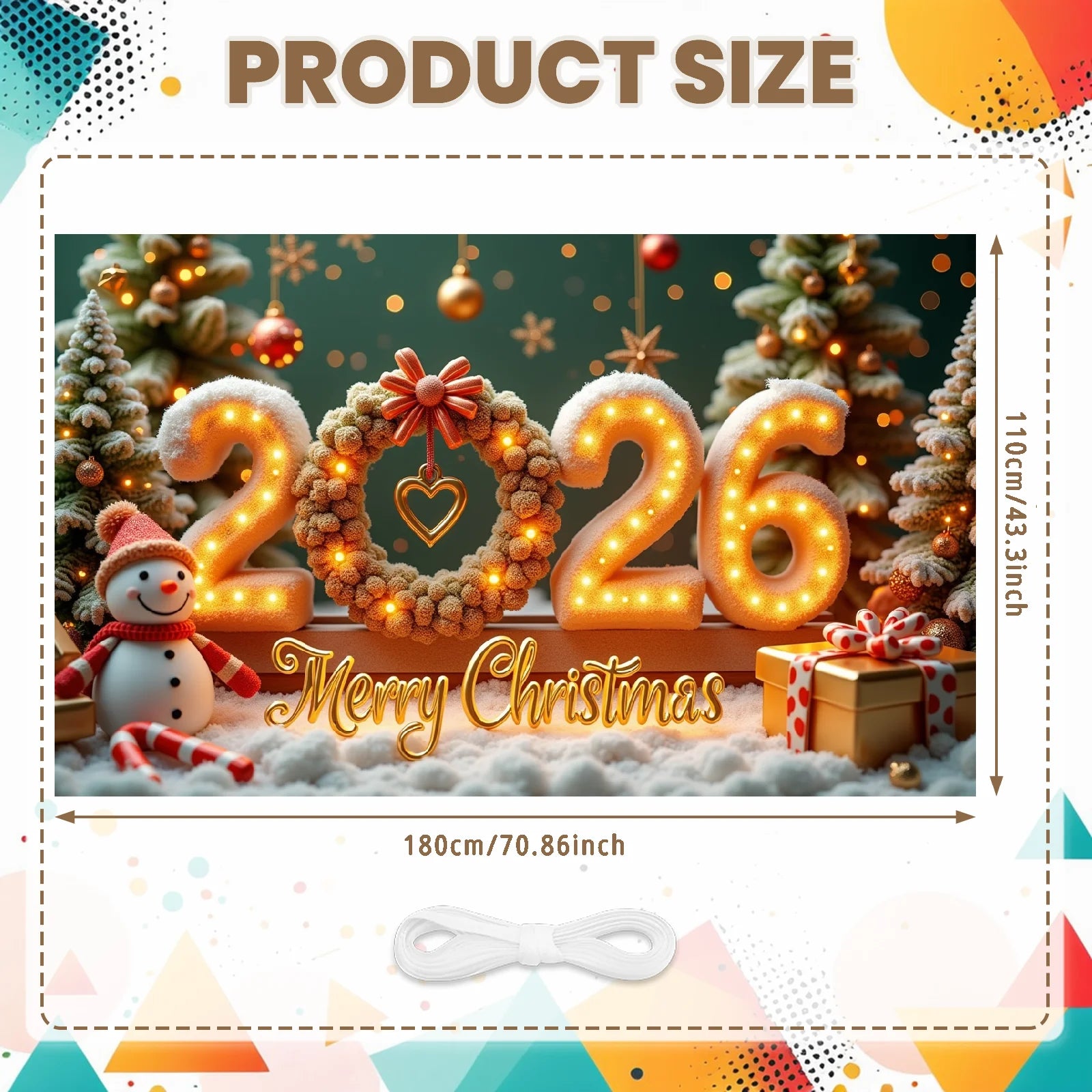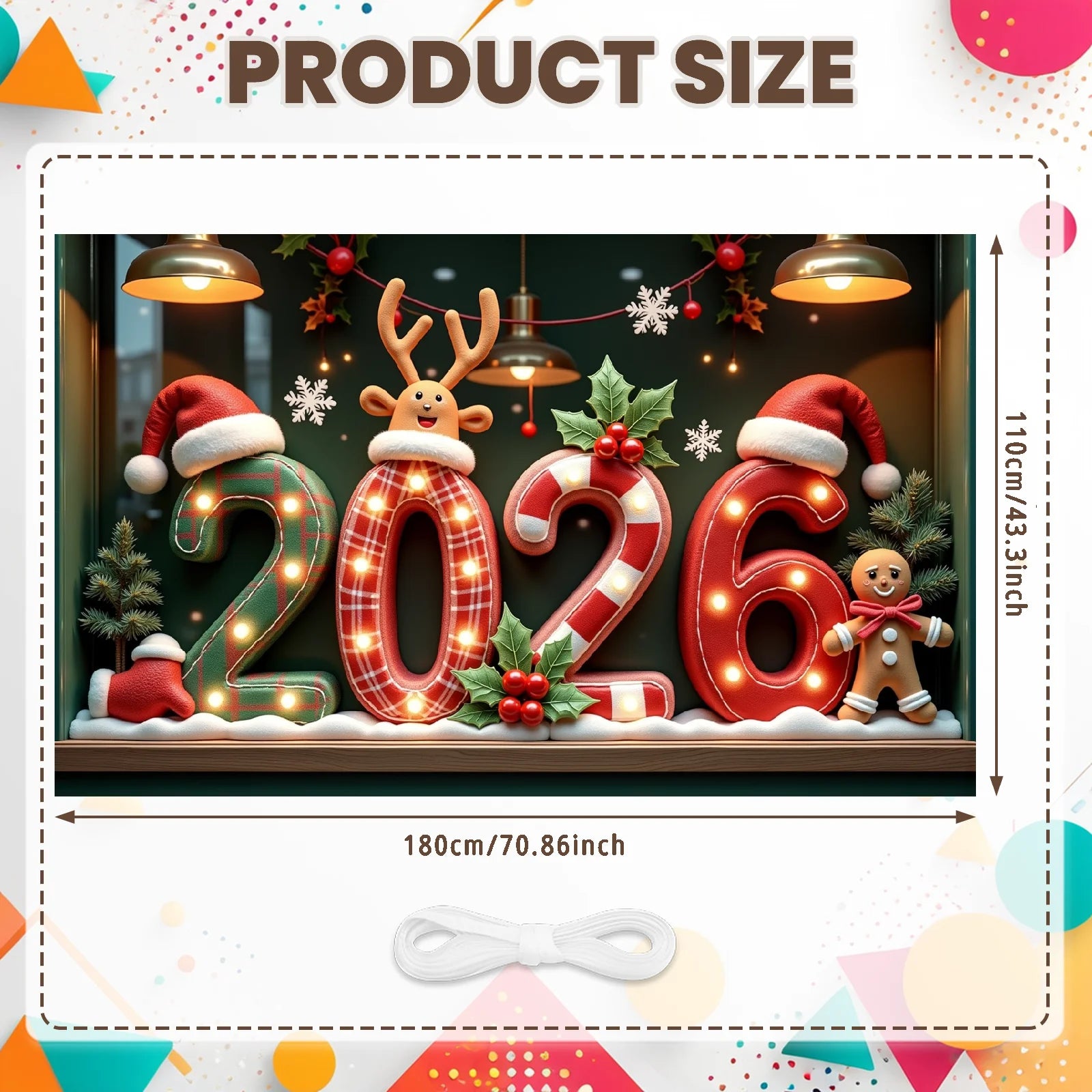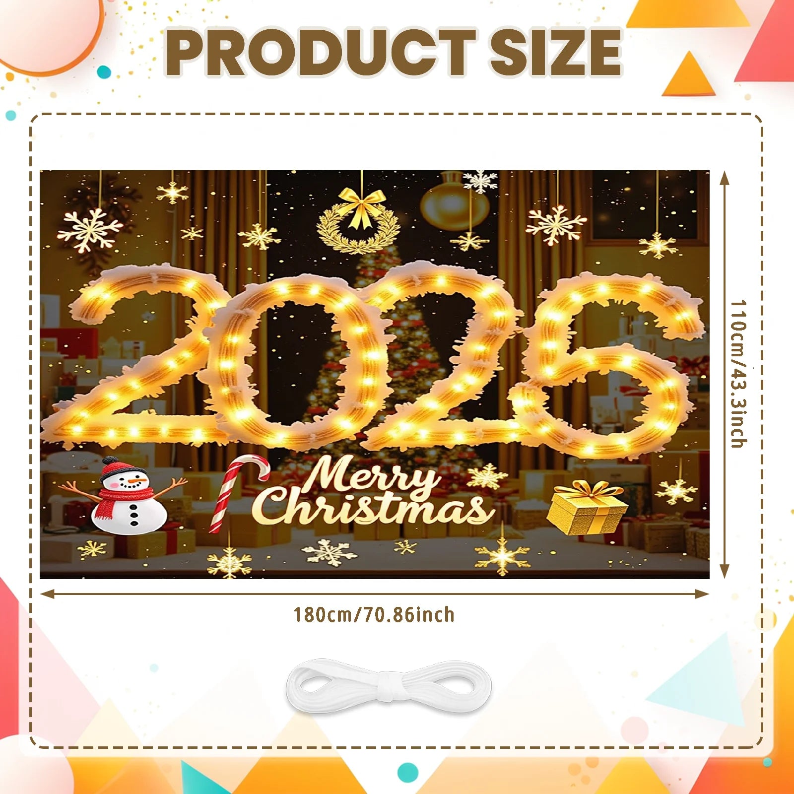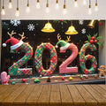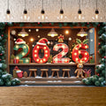 2026 New Year Banner Merry Christmas Banner Holiday Decoration Gold Light Up for Christmas Party Celebration Indoor Decor
