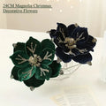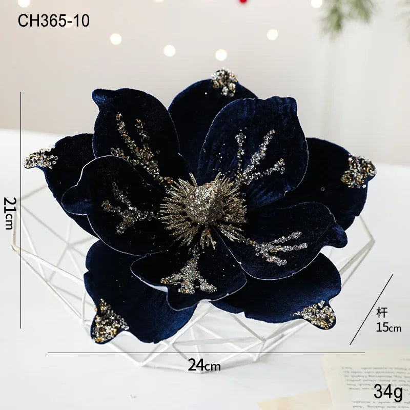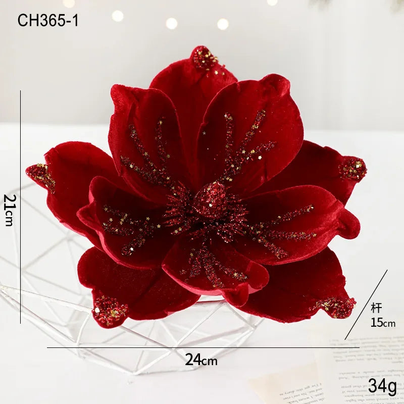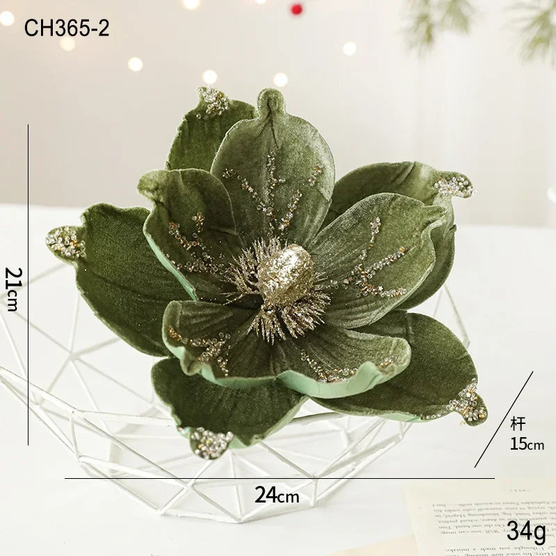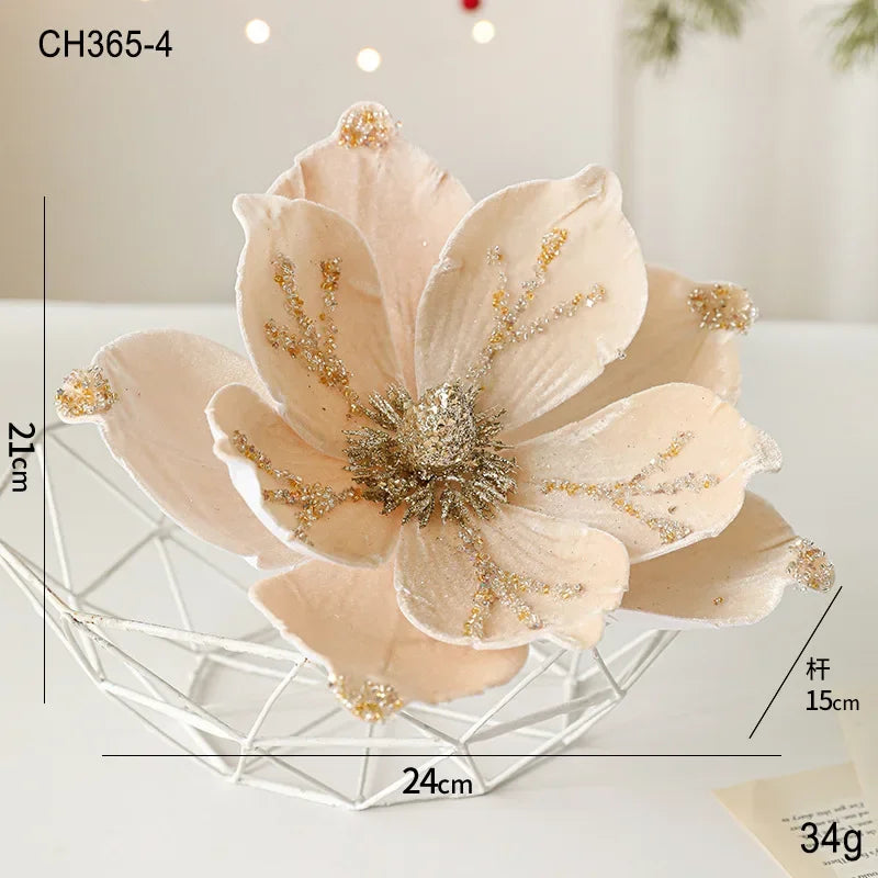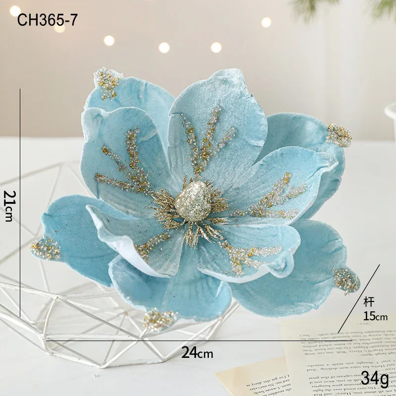 24CM Christmas Tree Decoration Flower Sticky Powderly White Magnolia Light Deluxe Cloth Christmas Party Decoration Supplies