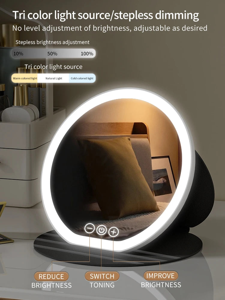 3 Color LED Makeup Mirror Dimmable 8.66 & 7.28inch with Touch Screen Fold Adjust Cosmetic Mirrors Tabletop Travel & Home Use