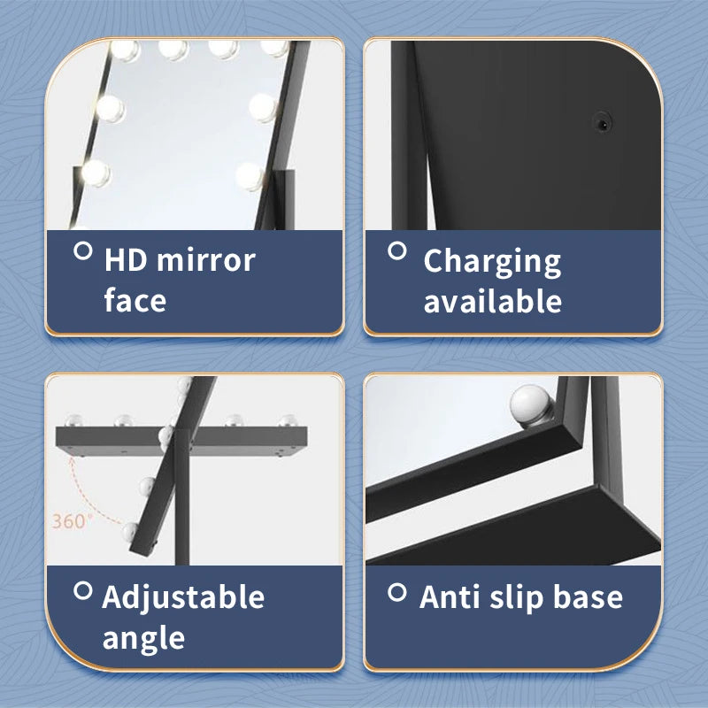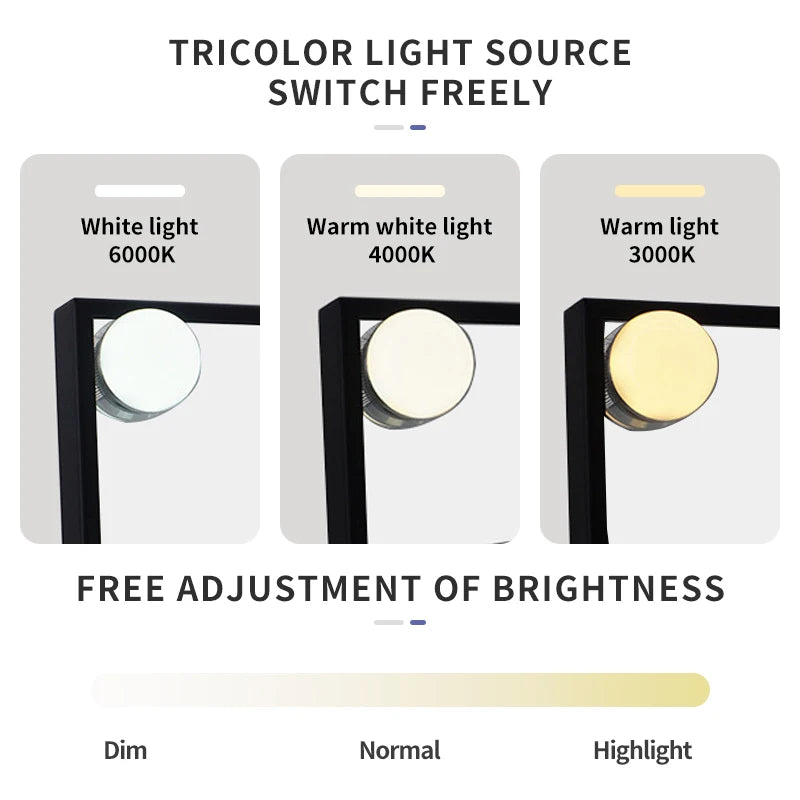 3 Color Lighting 360°Rotation Illuminated Vanity Mirror Hollywood Makeup Mirror with 9 LED Bulbs