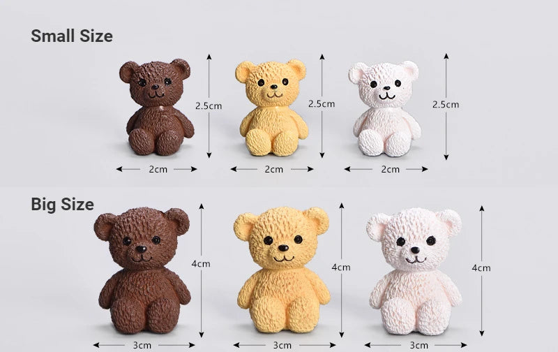 3pcs Kawaii Bear Figurines Small Statue Fairy Garden Miniatures Ornament Dollhouse Home Decoration Accessories Decoration Jardin