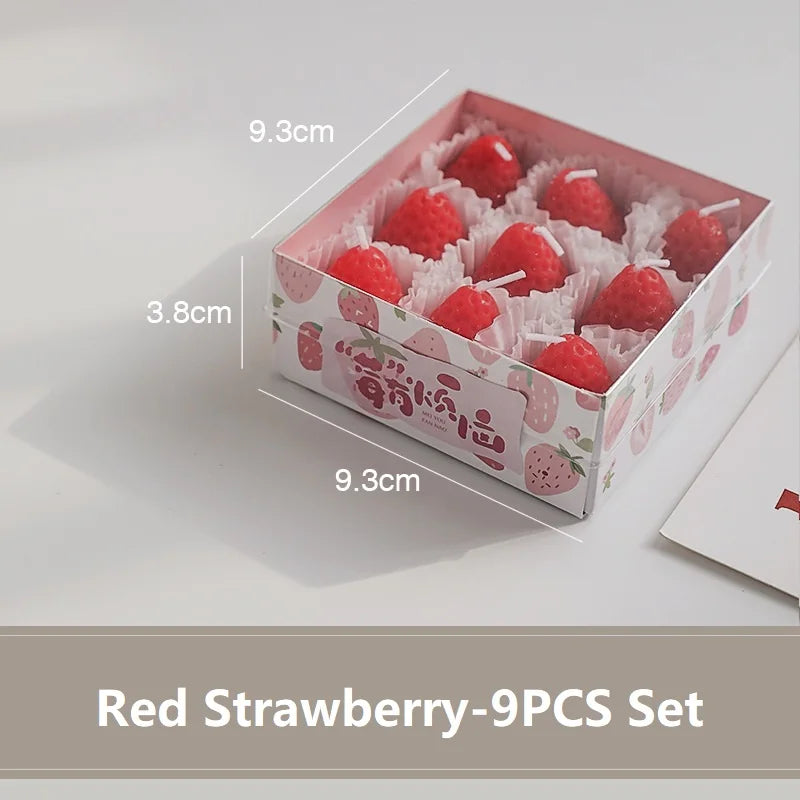 4/6/9PCS Strawberry Shaped Scented Candles Gift Box Handmade Realistic Fruit Scented Aromatherapy Mini Candles Home Decor Gifts