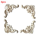 4pcs Wood Applique Carved Corner Onlay Furniture Mouldings Decal DIY For Frame Wall Door Cabinets Beige Decoration Crafts