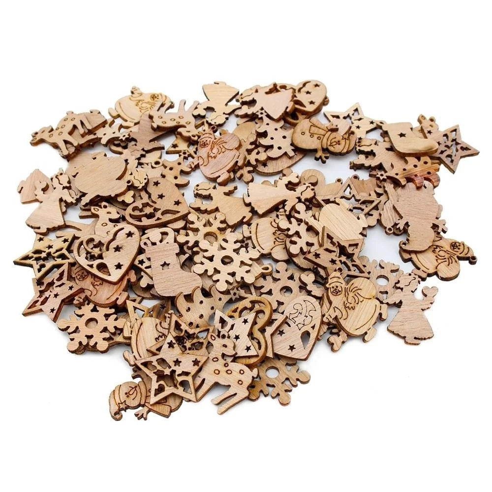 50pcs/Set Mini Christmas Tree Decor Ornaments Wooden Santa Claus Snowman Deer Pendants Christmas Decorations Small Figurines