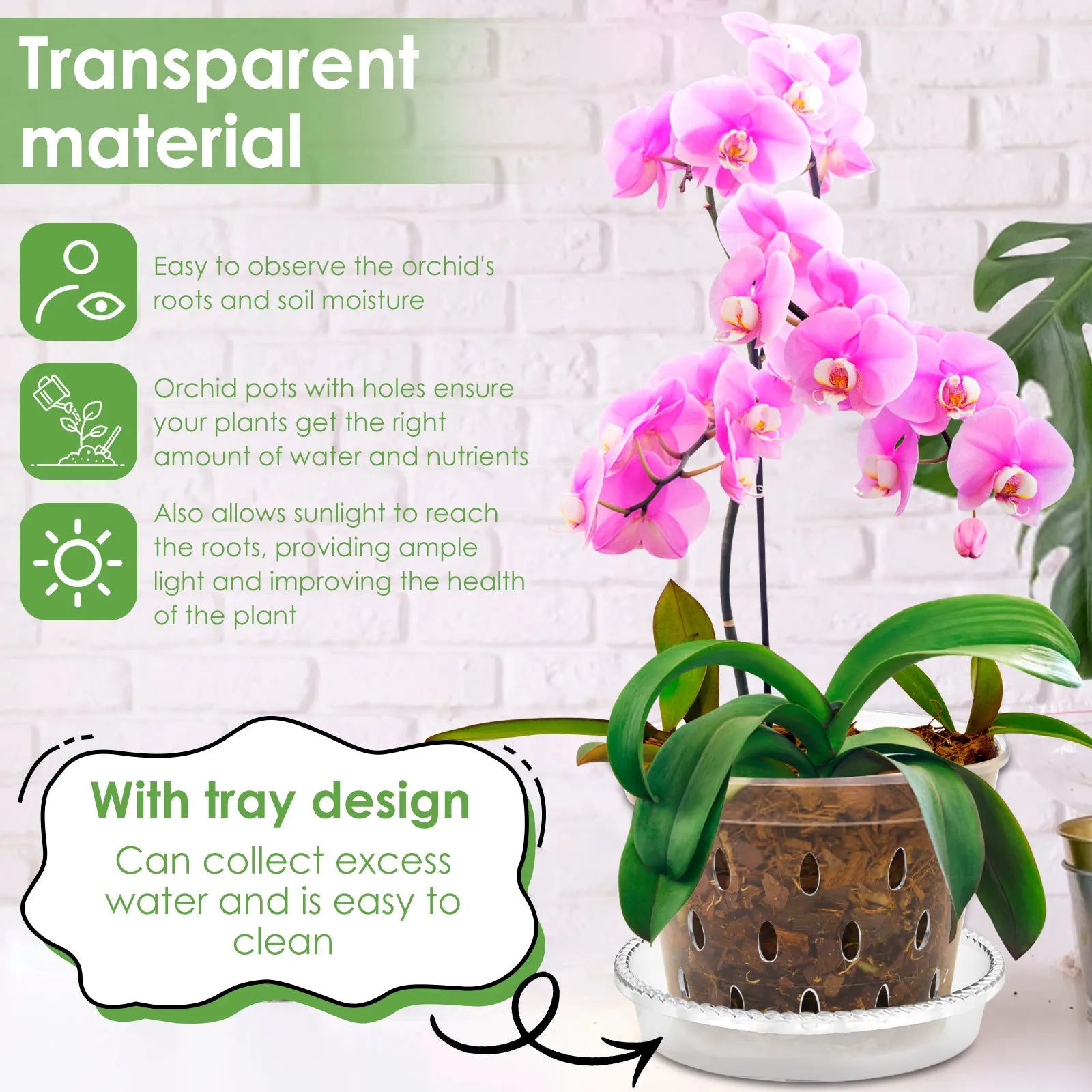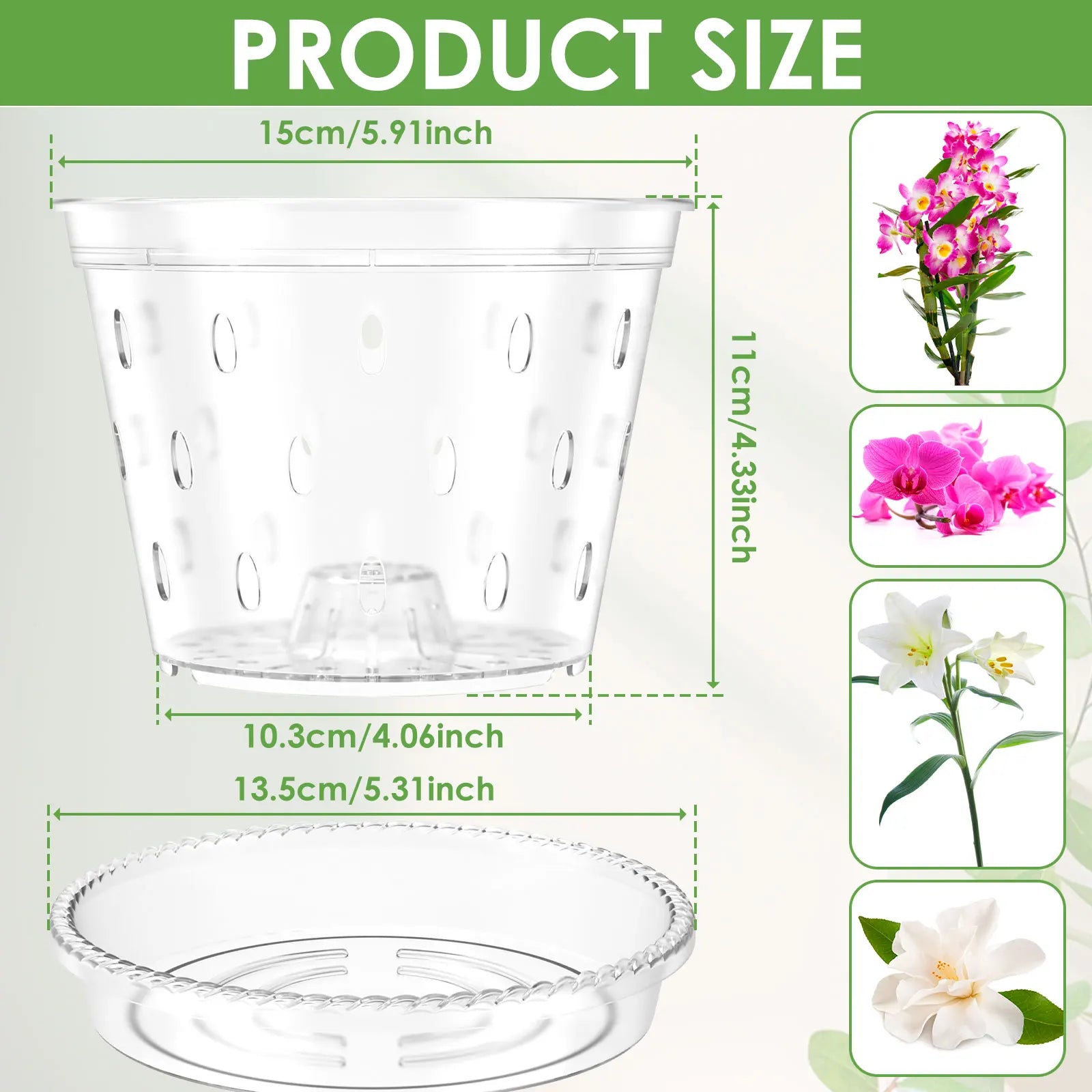 5Pcs Plastic Orchid Pot 4/5/6inch Transparent Slotted Orchid Pots with Holes and Saucers Breathable Flower Plant Pot for Nursery