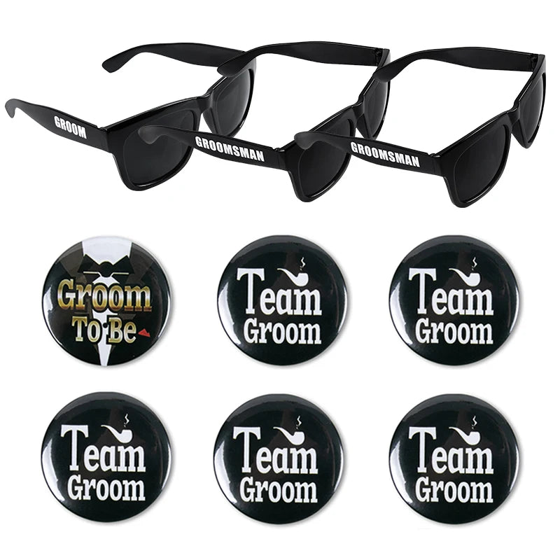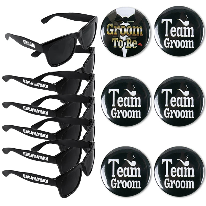 6/12pc Team Groom Badge Sunglasses Groom To Be Brooch Wedding Bachelorette hen Party Supplie Groomsman Gifts Bridal Shower Decor