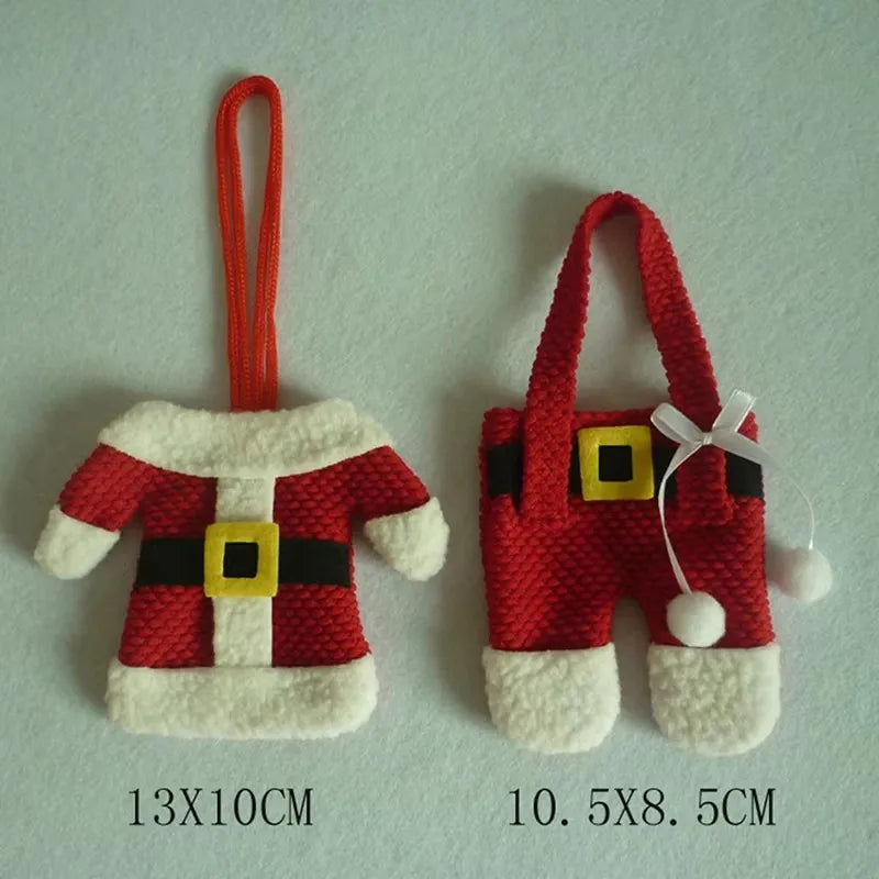 6pcs Christmas Table Decor Silverware Cutlery Tableware Holder Pocket Santa Suit Gift 2024 New Year Bag