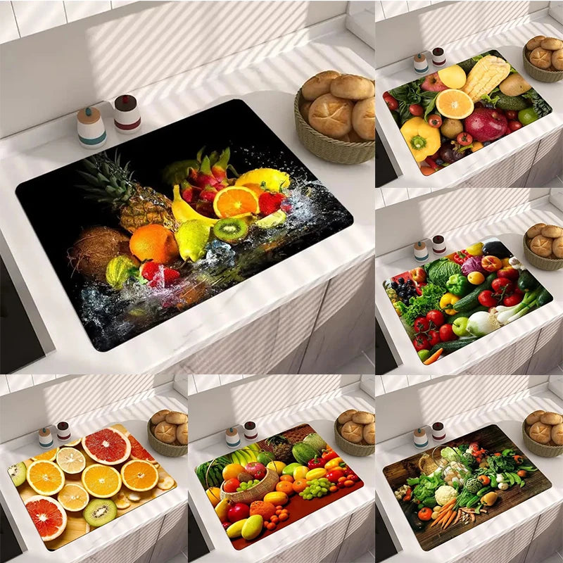 Absorbent Drain Pad Kitchen Mats Dish Drying Mat Anti-slip Tableware Placemat Coffee Rug Kitchen Supplies Retro Home Decoration