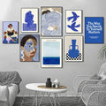 Abstract Blue Geometric Face Lines Canvas Painting Curve Girl Vase Dove Wall Art Posters Print Picture Nordic Bedroom Home Decor