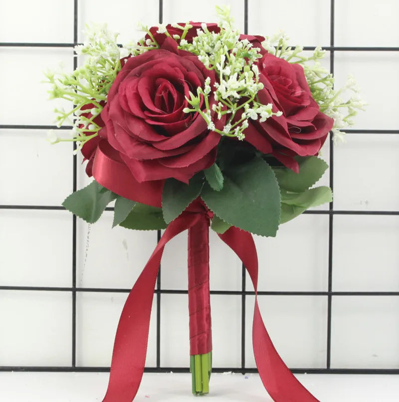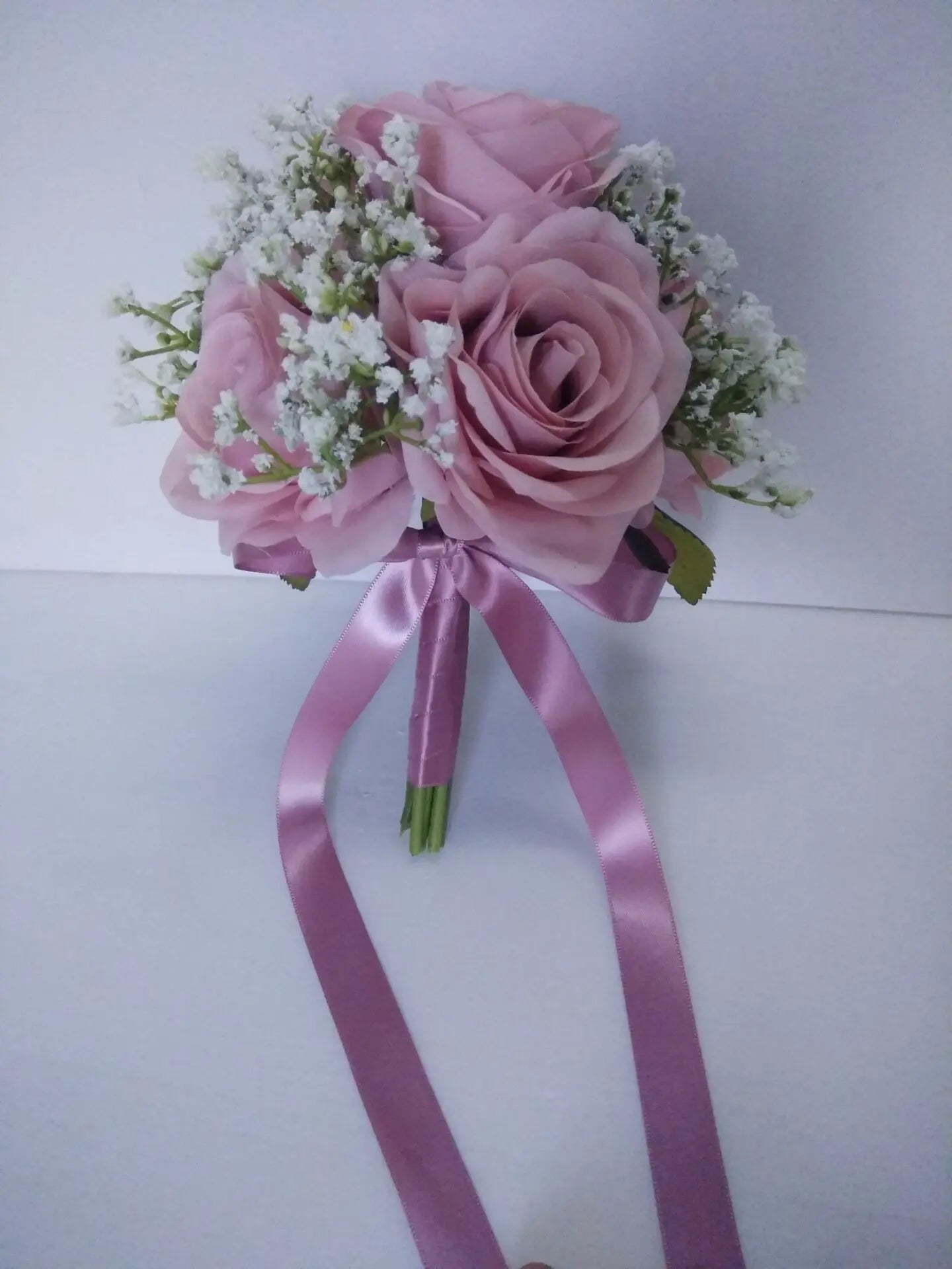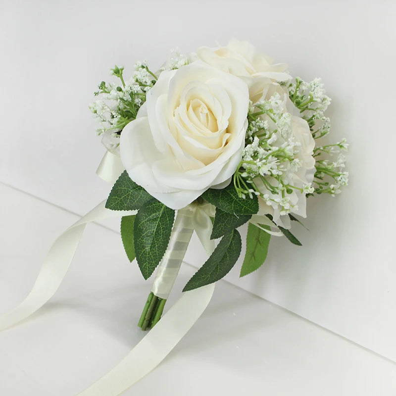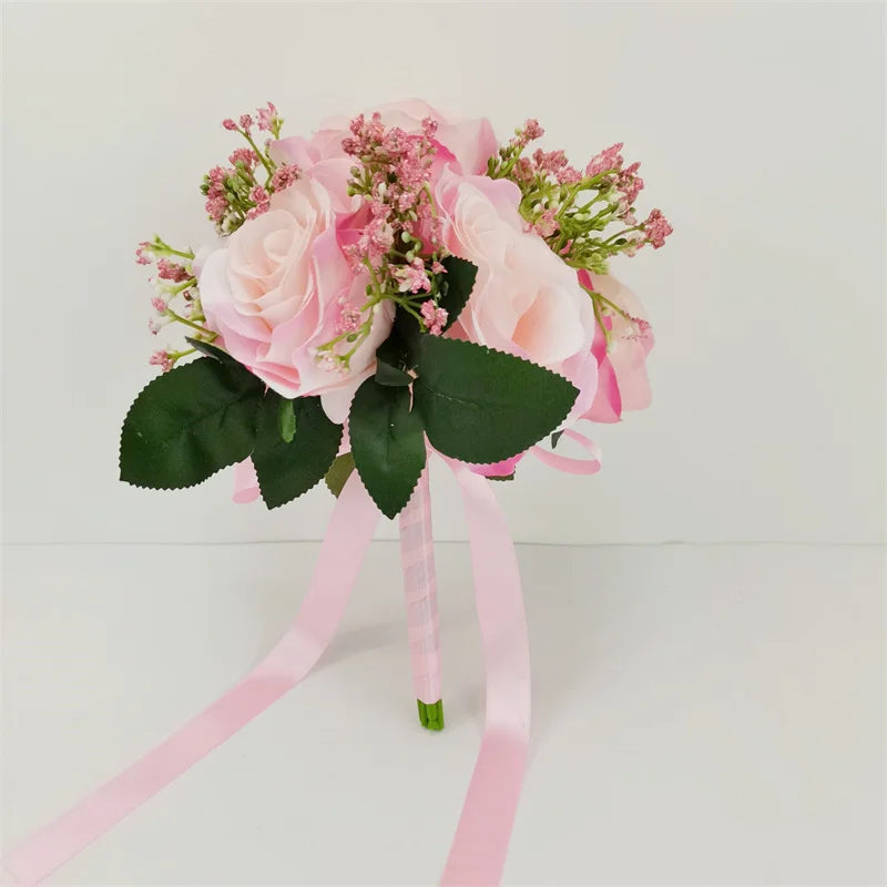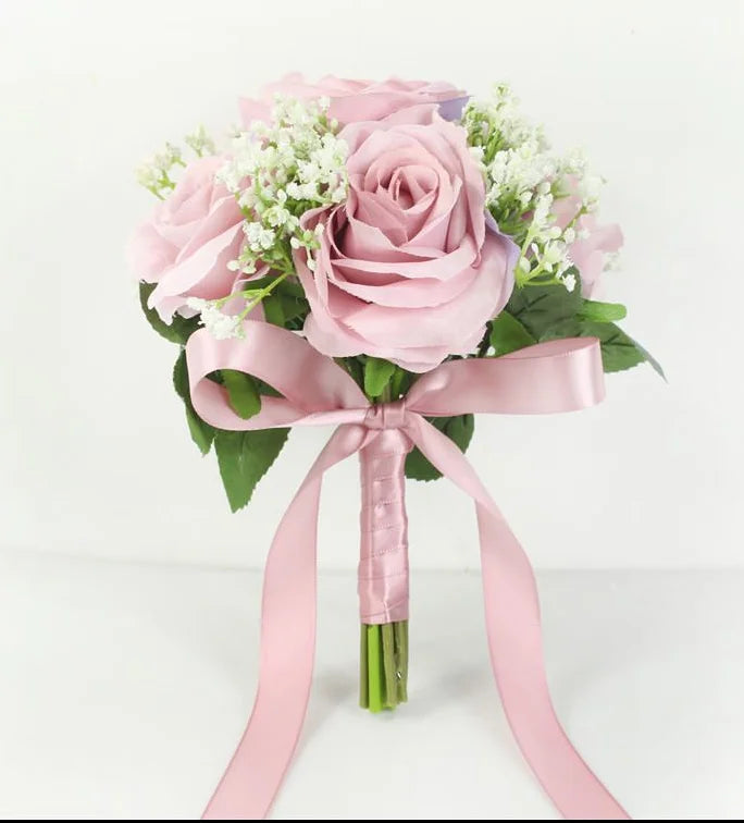 Artificial Roses Babysbreath Flowers Bouquet Silk Gypsophila Fake Flowers Wedding DIY Home Table Vase Decoration Faux Flores