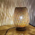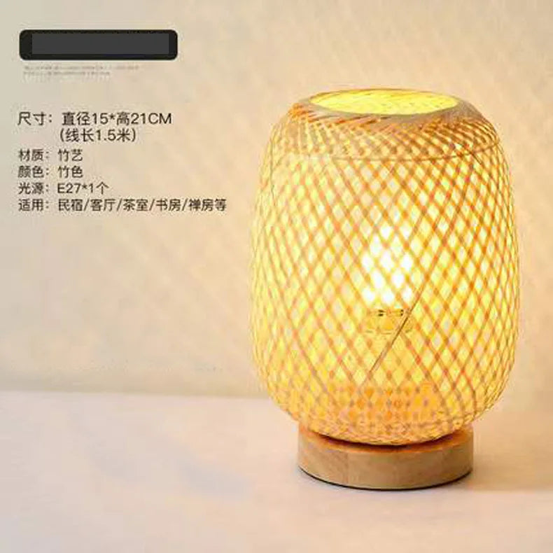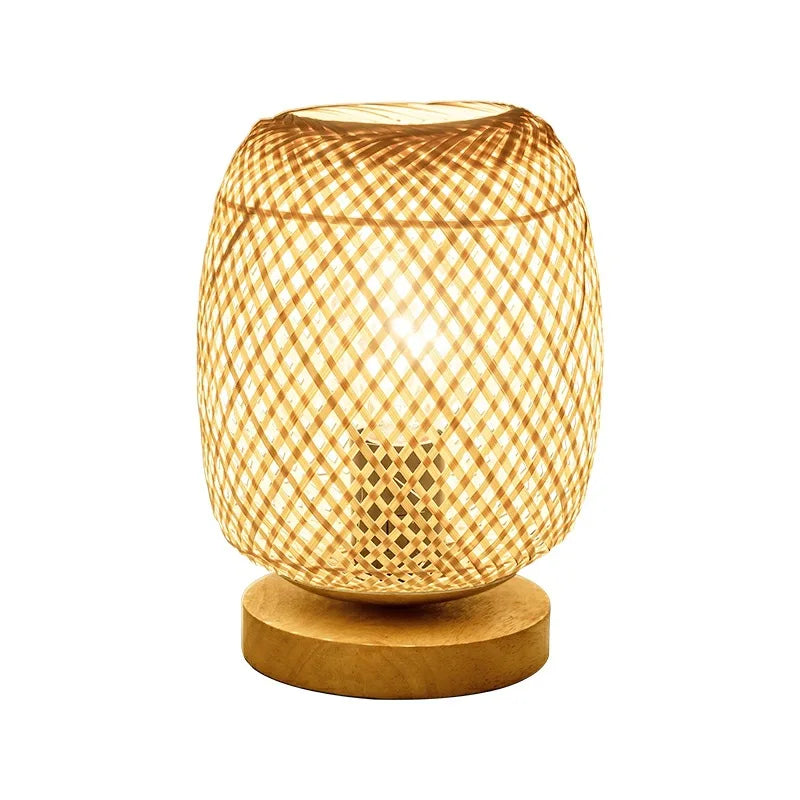 Bamboo Woven Table Lamp with Natural Wooden Base Bedroom Bedside Night Light Handcraft Reading Desk Home Decor