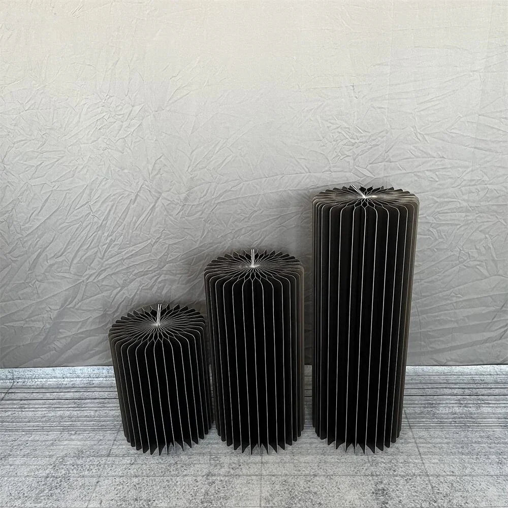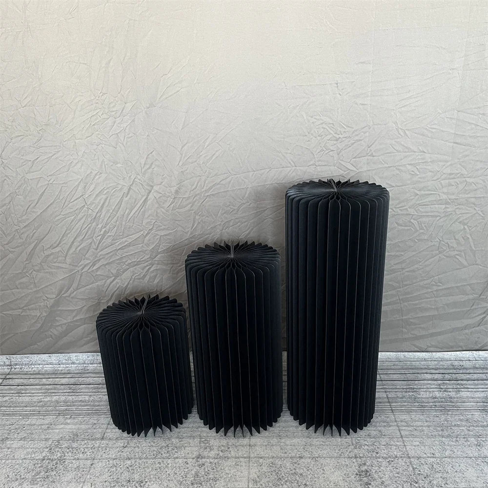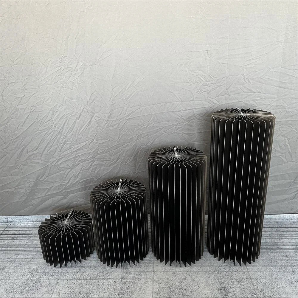 Black Folding Paper Cylindrical Banquet Birthday Party Dessert Table Cake Stand Wedding Prop Baby Shower Ramadan Decoration