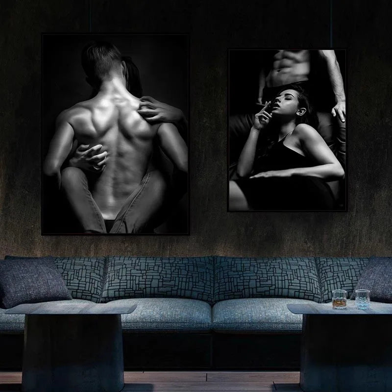 Black White Sexy Lovers Wall Art Canvas Painting Erotic Sensual Art Pictures Print Wall Posters Modern Home Bedroom Living Room