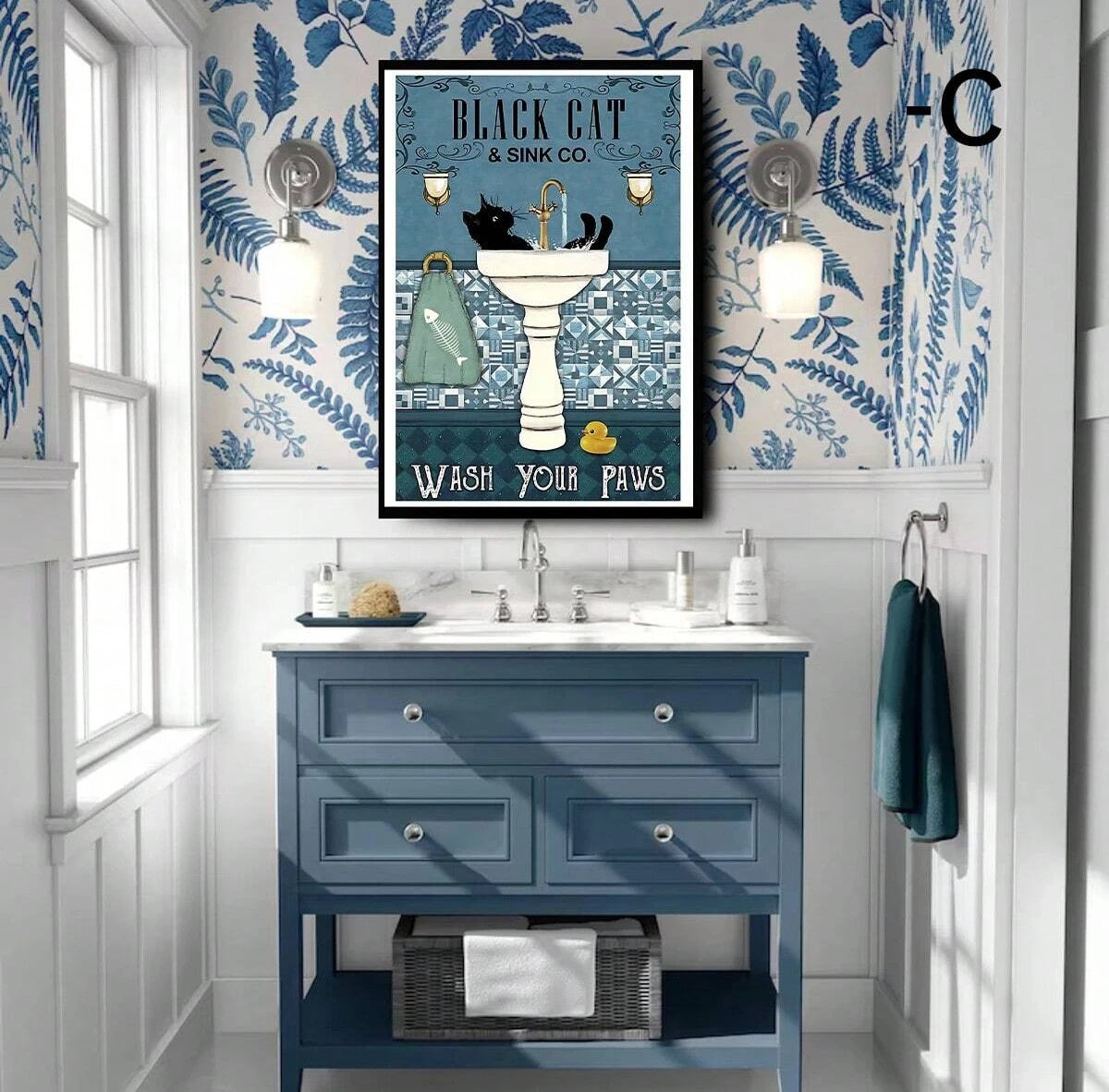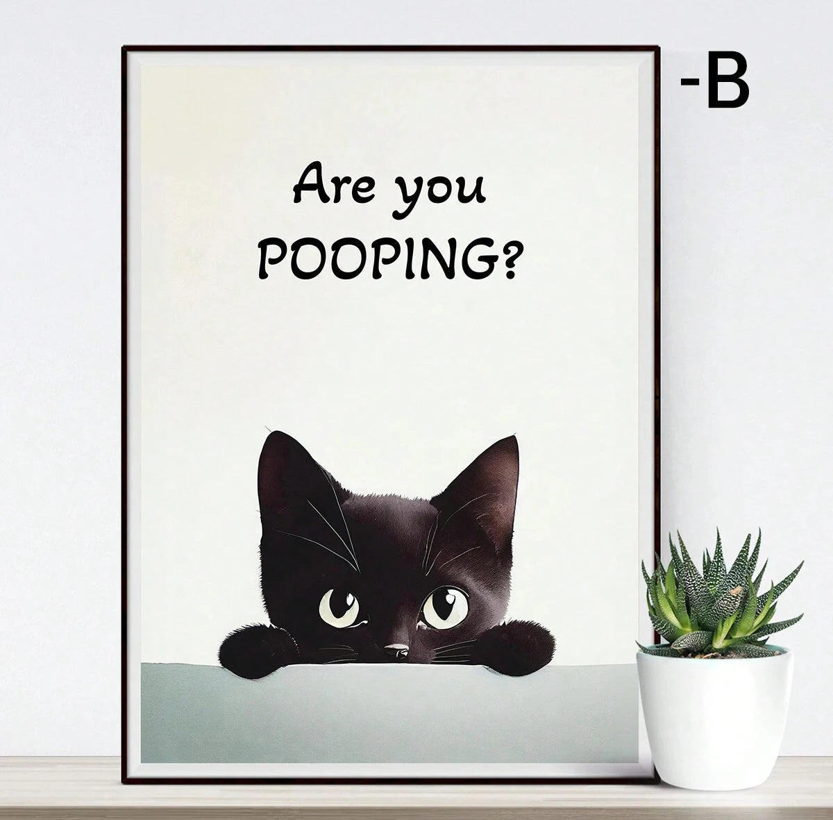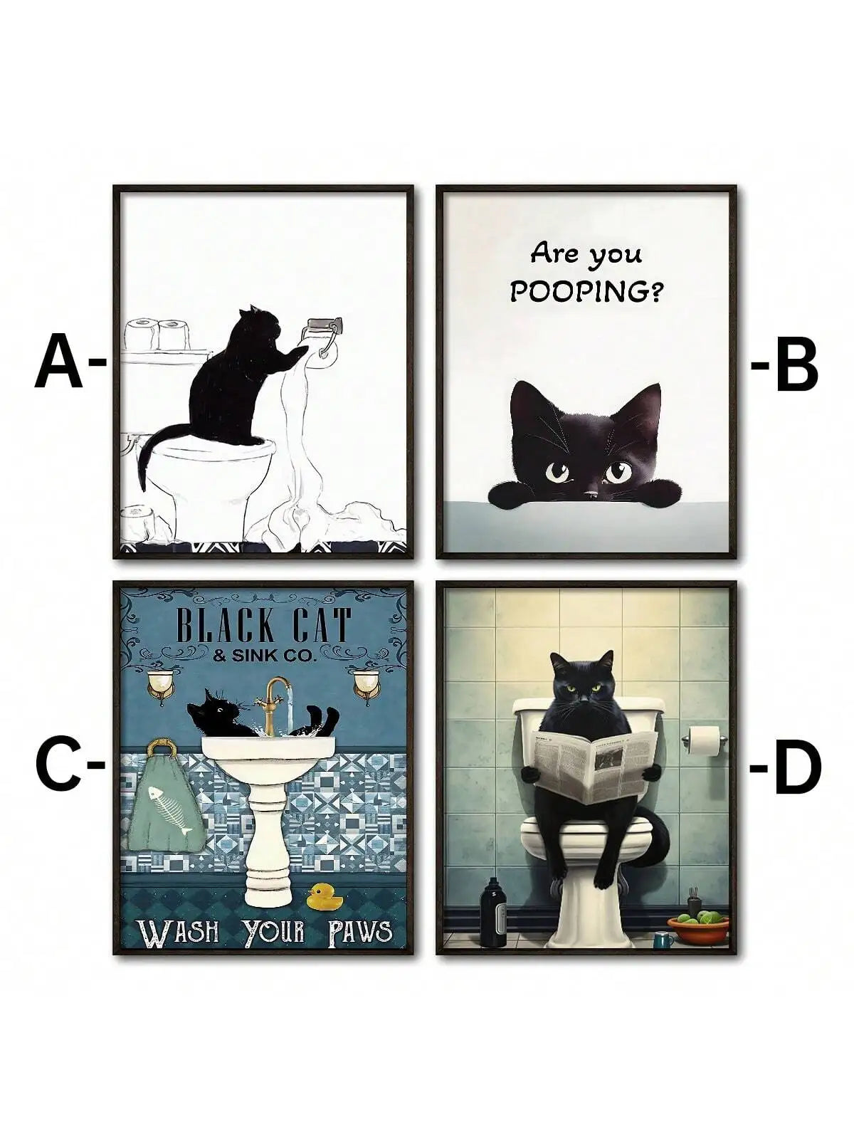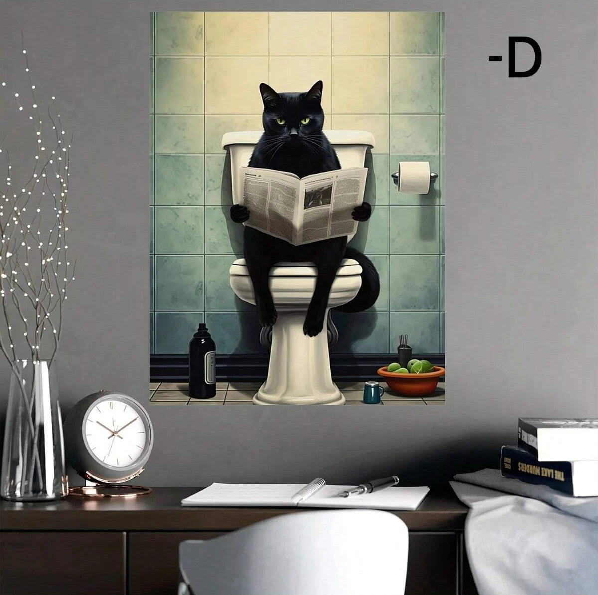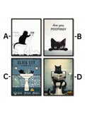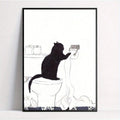 Cartoon Art Black Cat Standing on Toilet Holding Tissue Ideal Gift for Bedroom Living Room Wall Art Decoration Room Decor