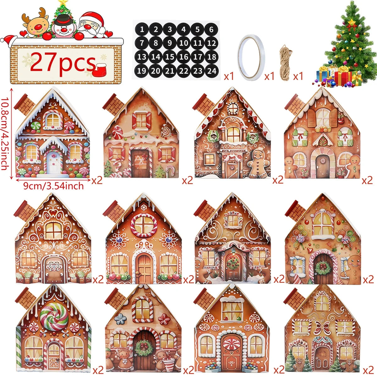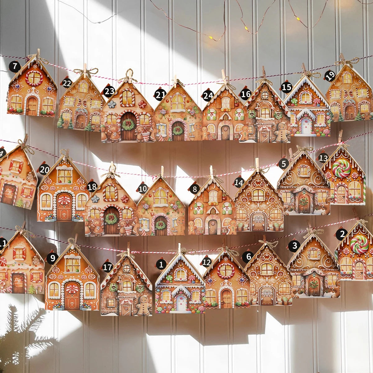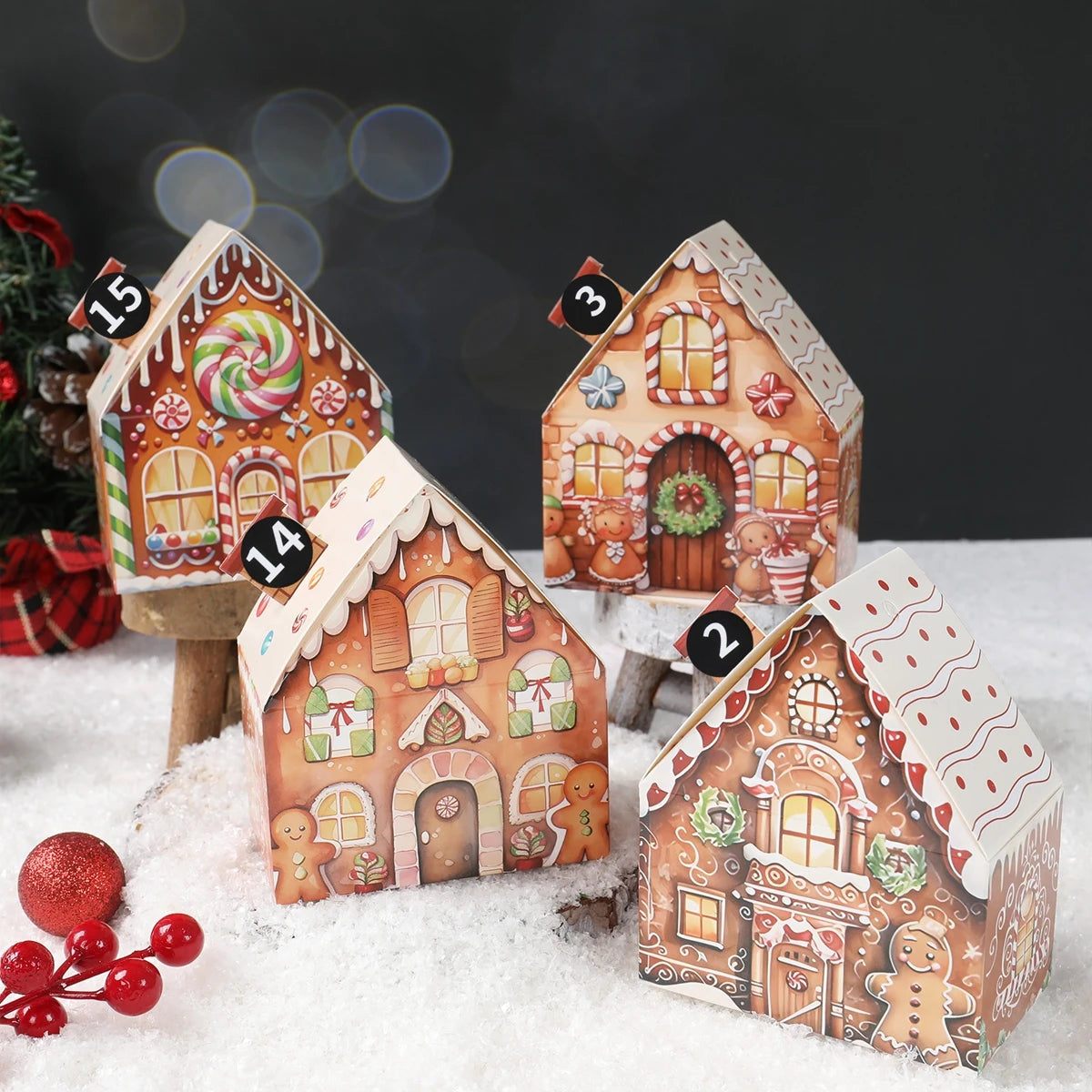 Christmas House Shape Box Navidad Natal Noel Tree Hanging Pendant Merry Christmas Decorations For Home 2024 Happy New Year 2025