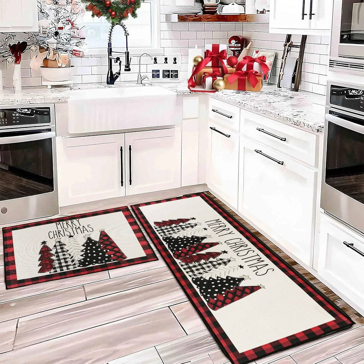Christmas Kitchen Rugs, Plaid Pattern Kitchen Runner Rug for Kitchen Decoration Home 2024 Navidad Noel Gifts New Year 2025
