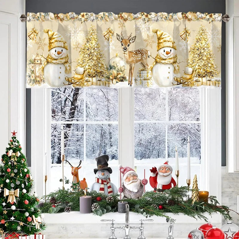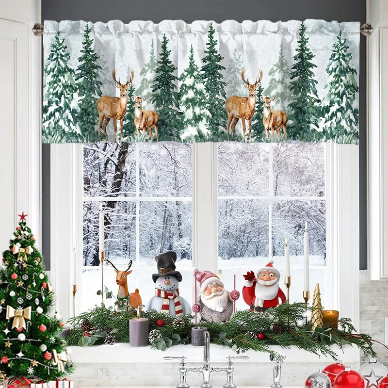 Christmas Short Curtains Valances Merry Christmas Decorations For Home 2025 Xmas Navidad Kitchen Bedroom Ornaments New Year 2026