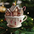 Coffee Cup Ornaments For Christmas Tree 2D Acrylic Christmas Snow Houses Chocolate Mug Pendant Christmas Tree & Car Decor