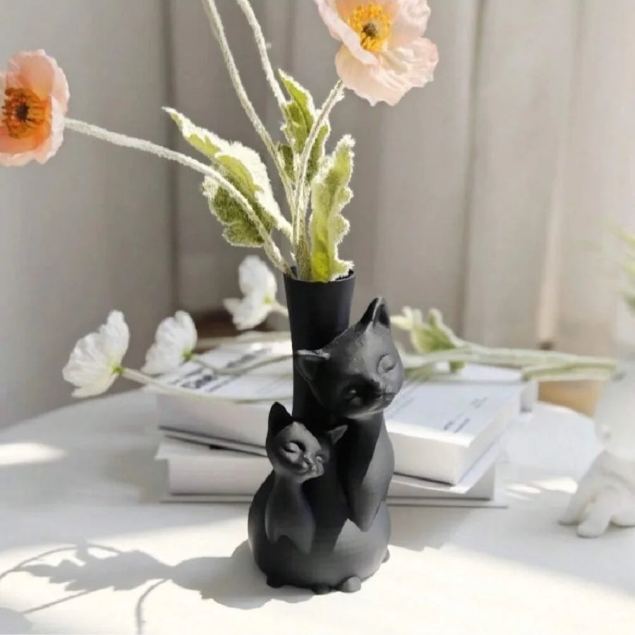 Creative Art Dry Flower Hydroponic Cat Vase, Suitable for Indoor Living Room, Study, Office, Outdoor Balcony Garden Mother's Day